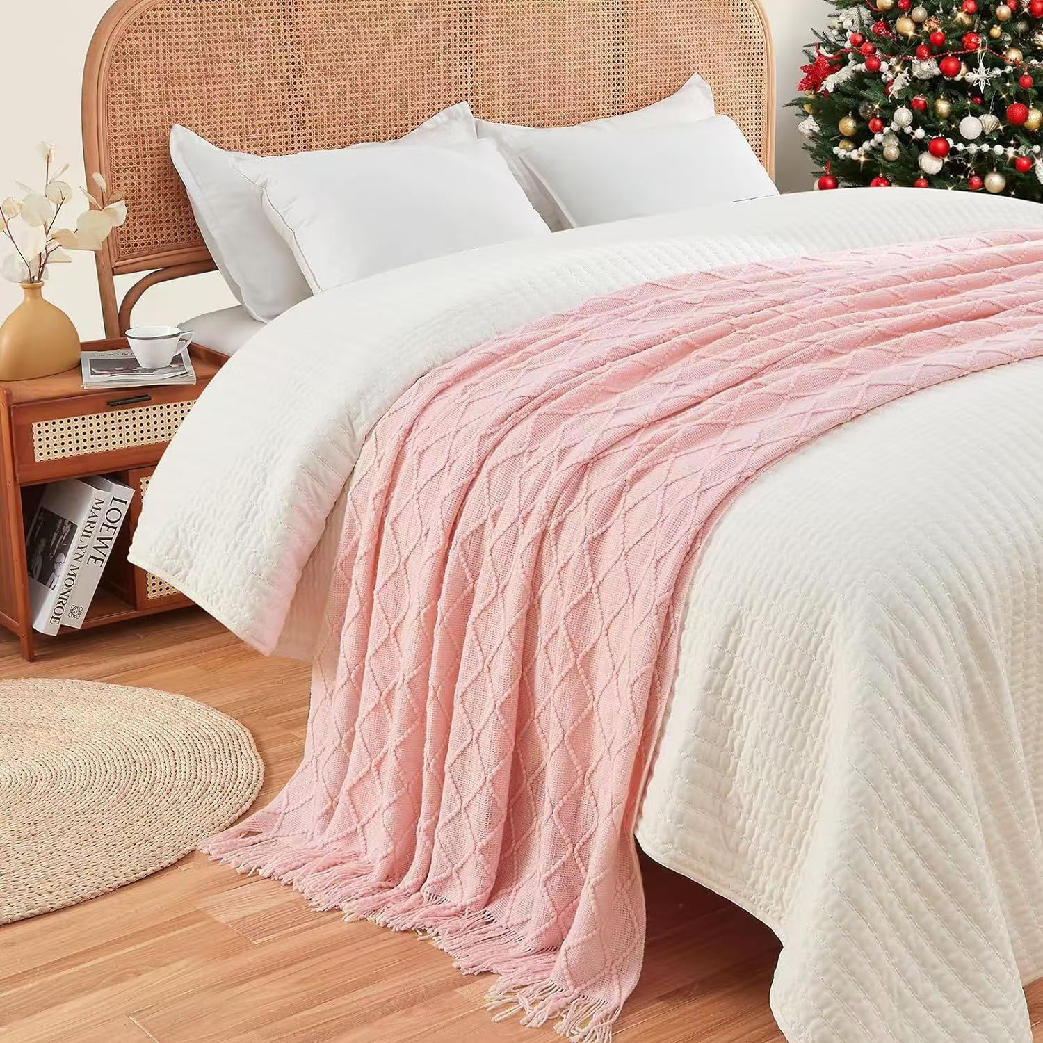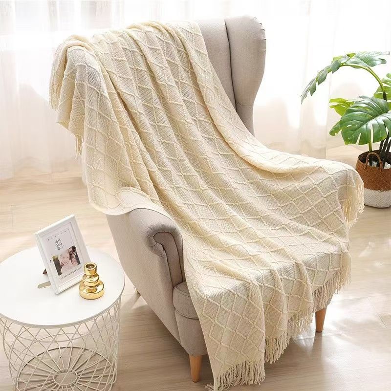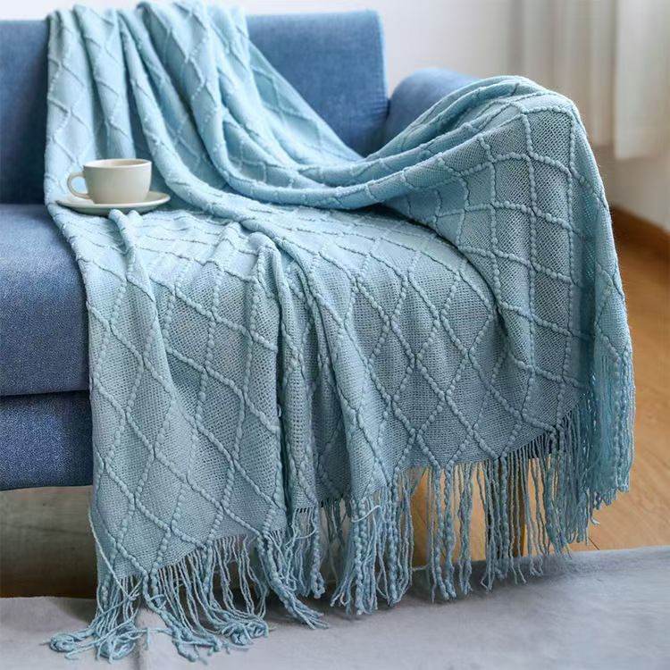 북유럽 스타일의 다이아몬드 무늬 니트 담요, 침대 옆 담요, 침대 및 소파용 담요, 침대 덮개, 사계절용