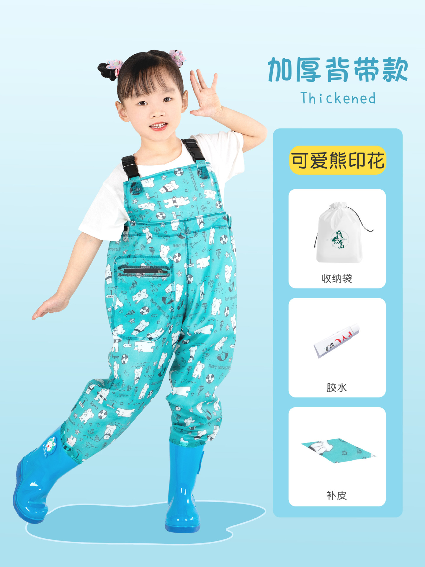 어린이 원피스 물놀이 옷 전신 방수 비 바지 장화 한 조각 물 바지 유치원 장비스토어 가기