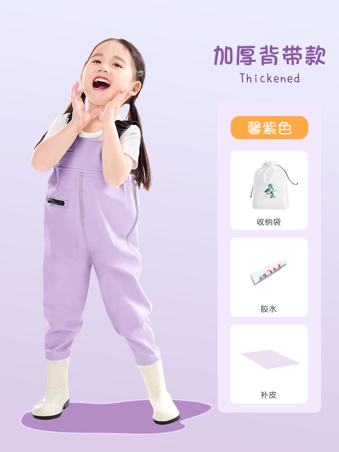 • 아동용 보라색 작업복 [두꺼워지고 새면 교체됨]