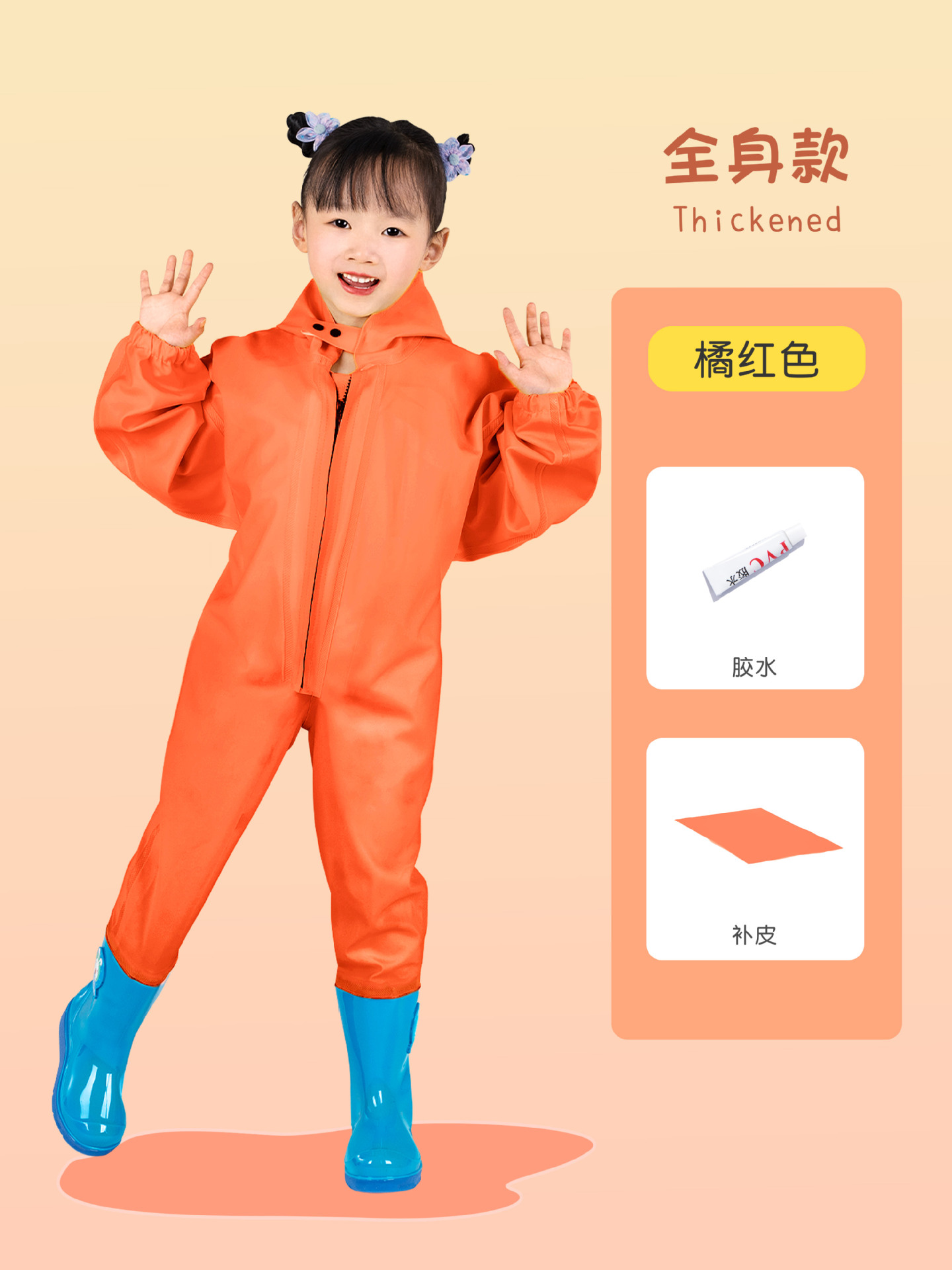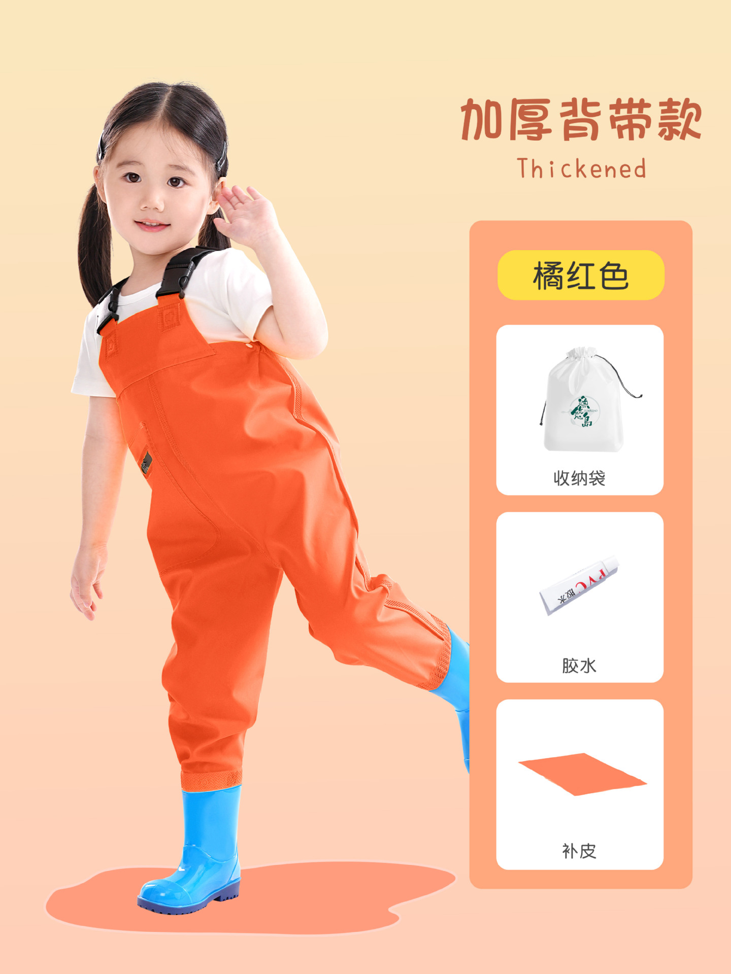 • 주머니가 있는 어린이용 주황색-빨간색 작업복(두꺼워지고 새것으로 교체됨)