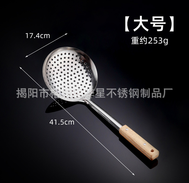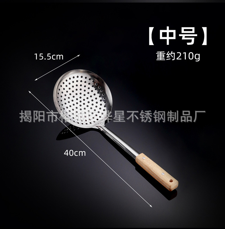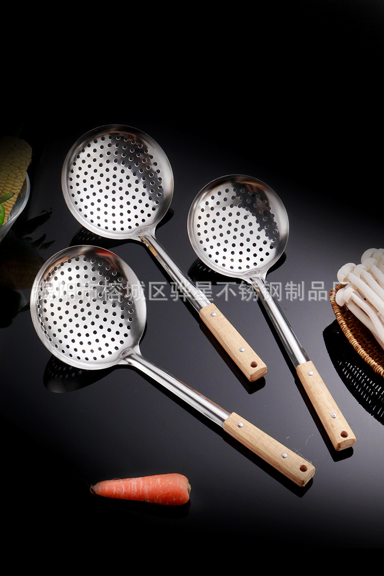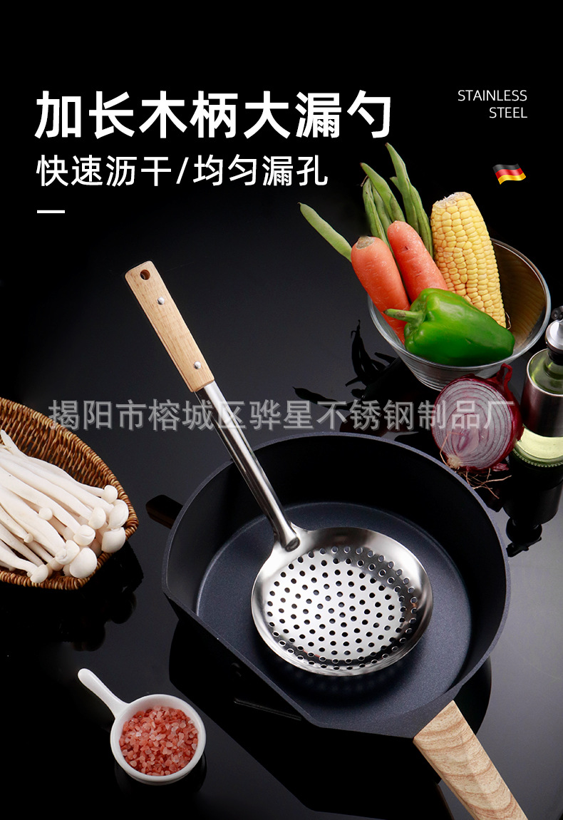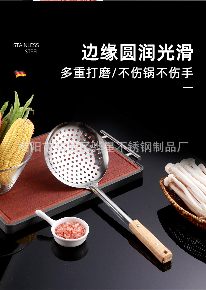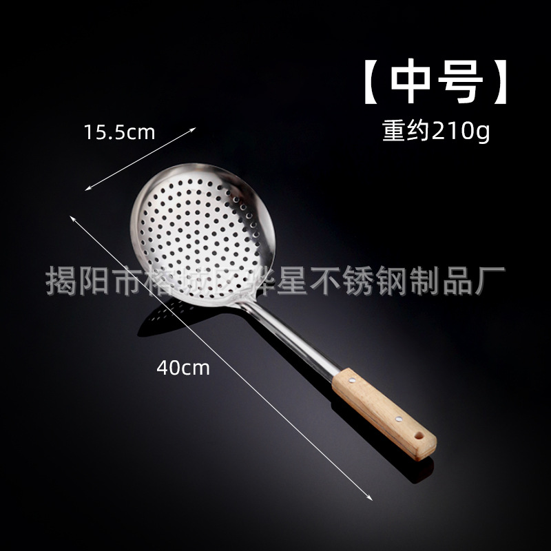 스테인레스 스틸 나무 손잡이 소쿠르 프라이드 드레인 필터 스푼 상업용 주방 요리 도구 두꺼운 메쉬 대형 스트레이너스토어 가기