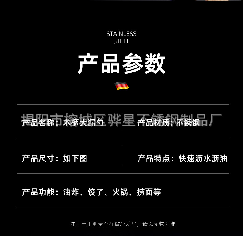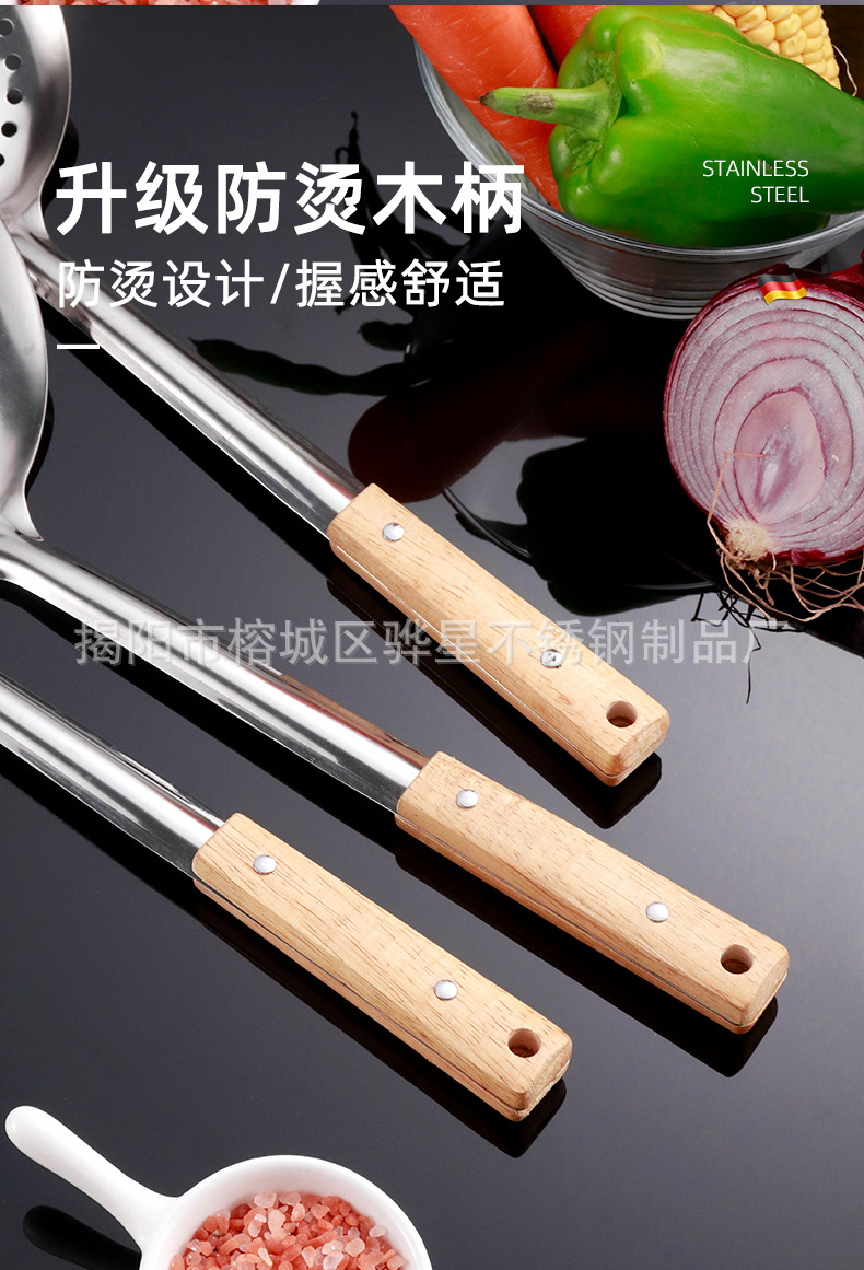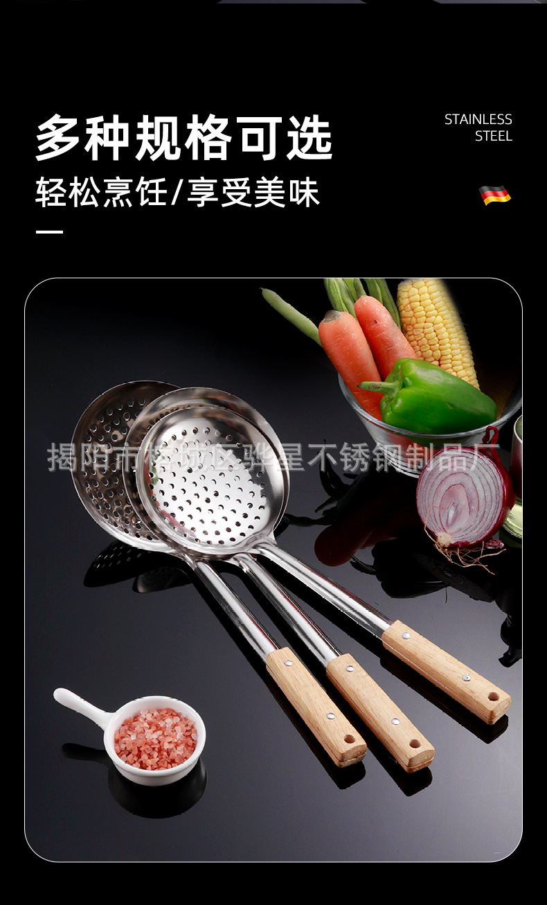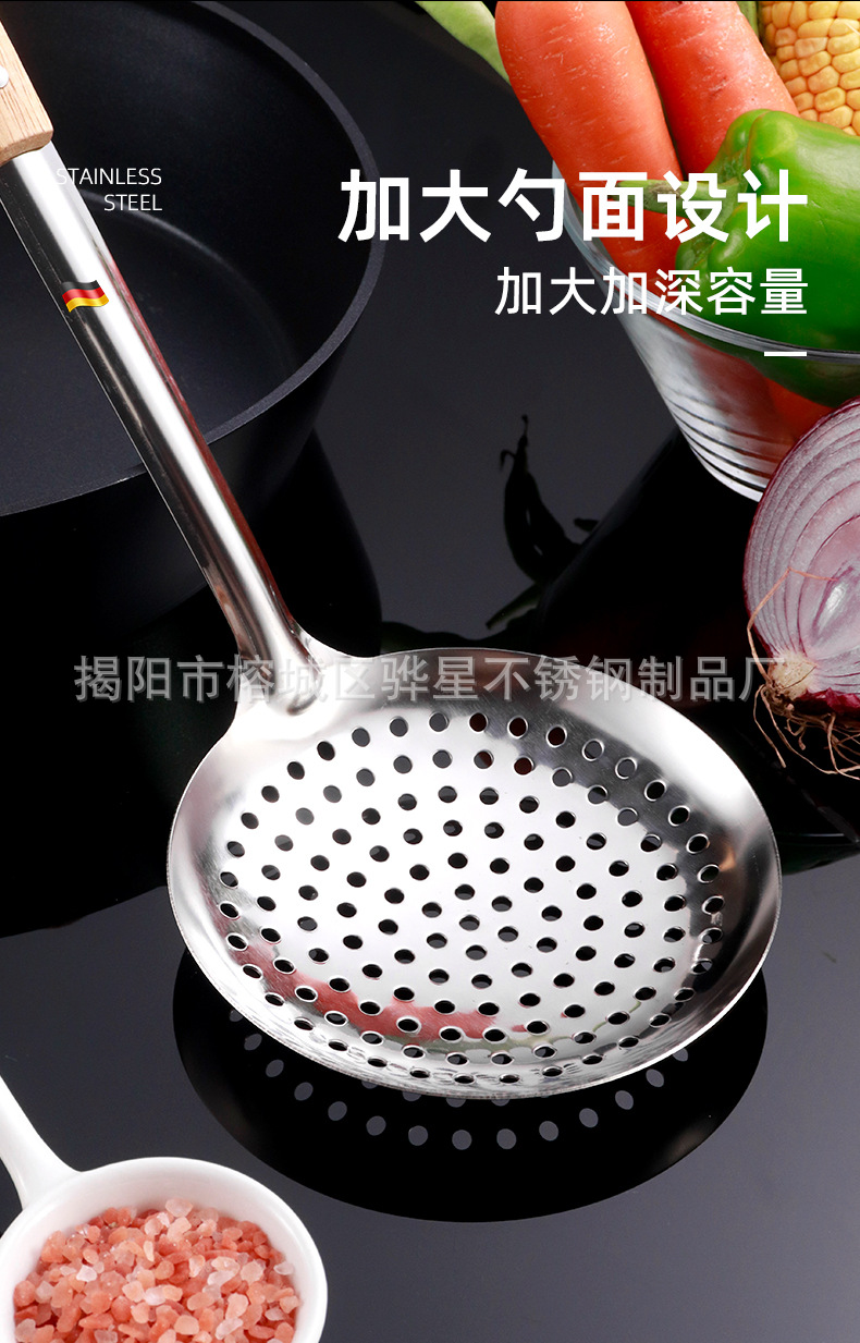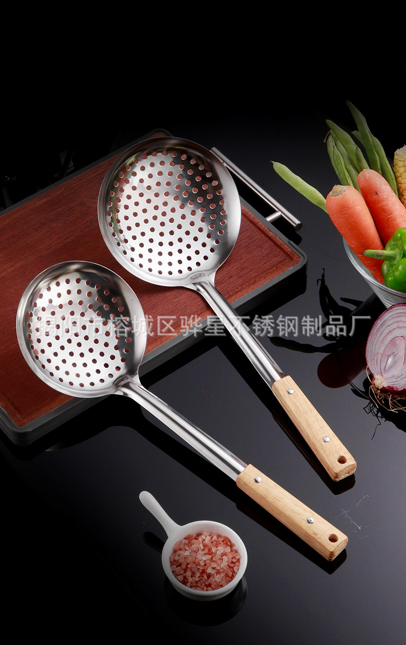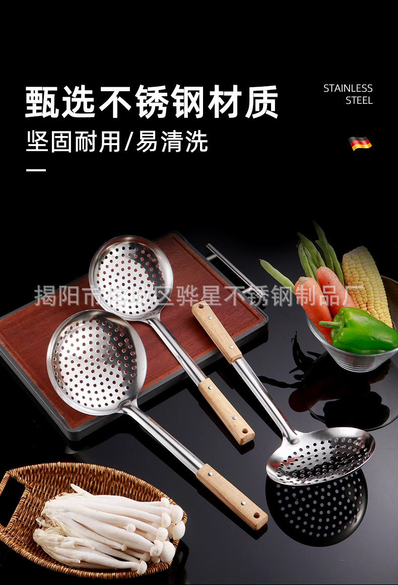 스테인레스 스틸 나무 손잡이 소쿠르 프라이드 드레인 필터 스푼 상업용 주방 요리 도구 두꺼운 메쉬 대형 스트레이너스토어 가기