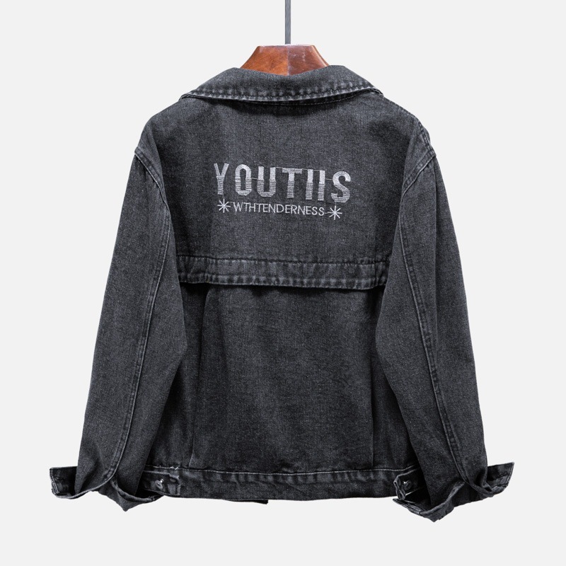 Y9Z 데님 재킷 여자 한국식 느슨한 봄과 가을 올 매치 뉴 슬리밍 솔리드 컬러 쇼트 블랙 재킷스토어 가기