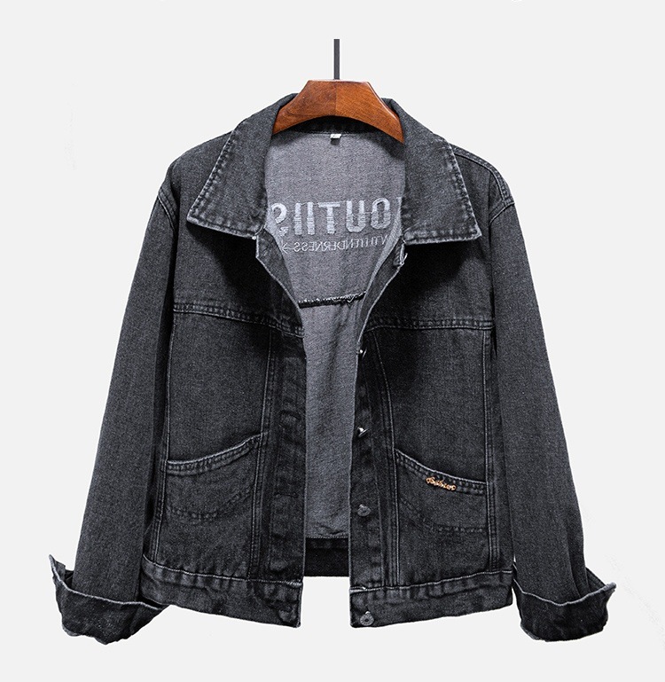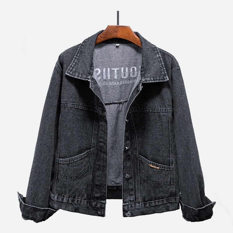 Y9Z 데님 재킷 여자 한국식 느슨한 봄과 가을 올 매치 뉴 슬리밍 솔리드 컬러 쇼트 블랙 재킷