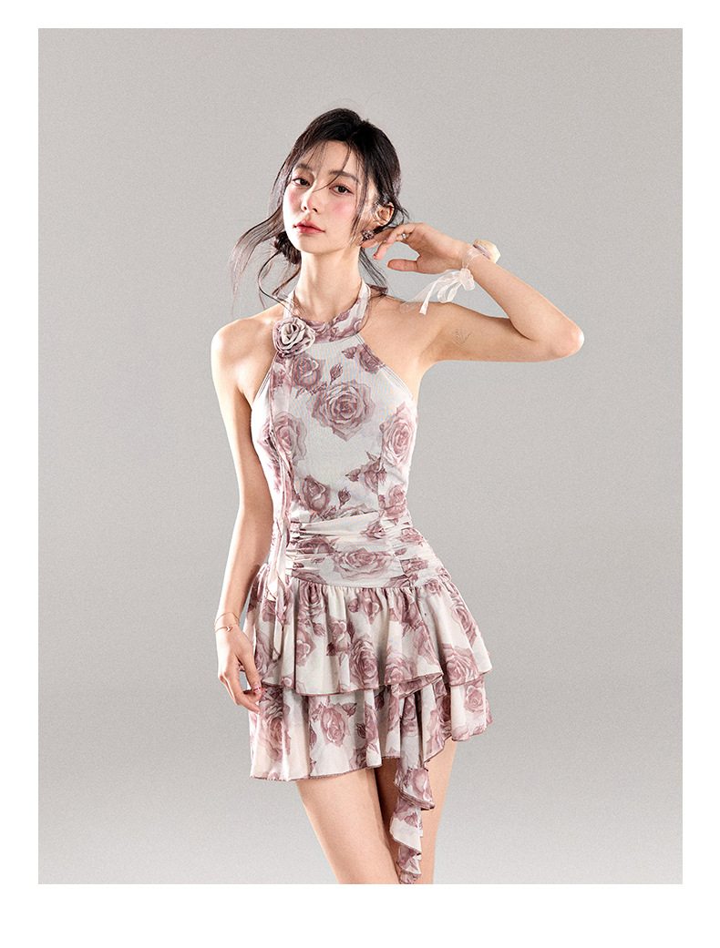 수영복 여성용 원피스 백리스 벨리 커버 슬리밍 러플 스커트 스타일 섹시한 온천 해변 휴가 요정 민소매