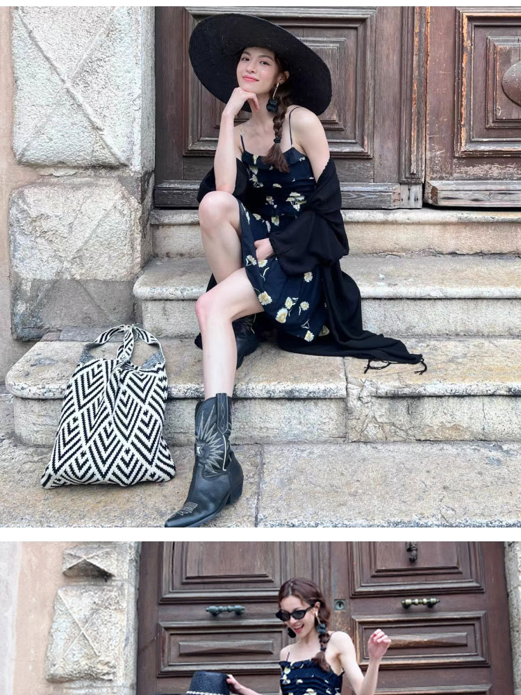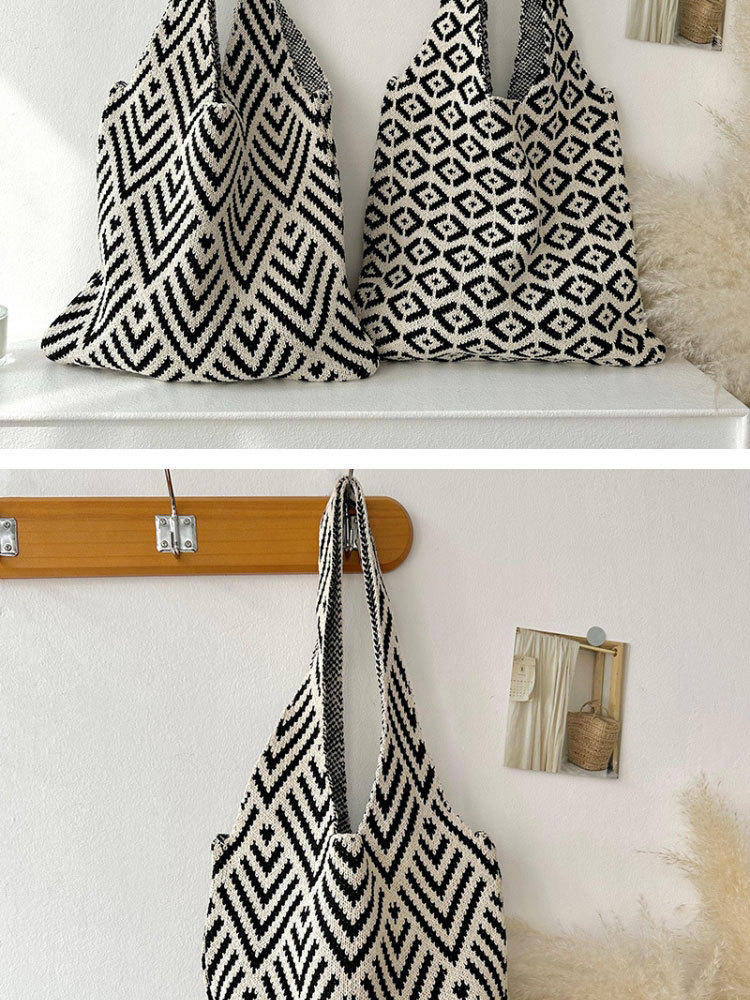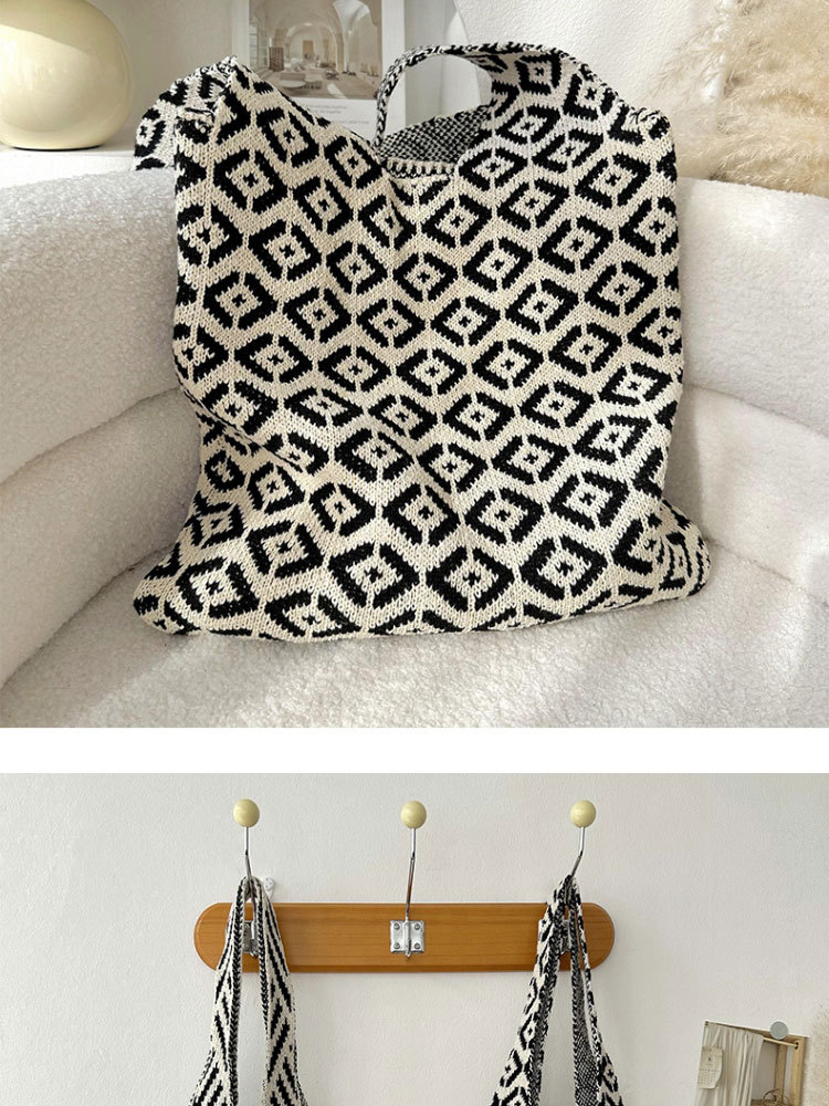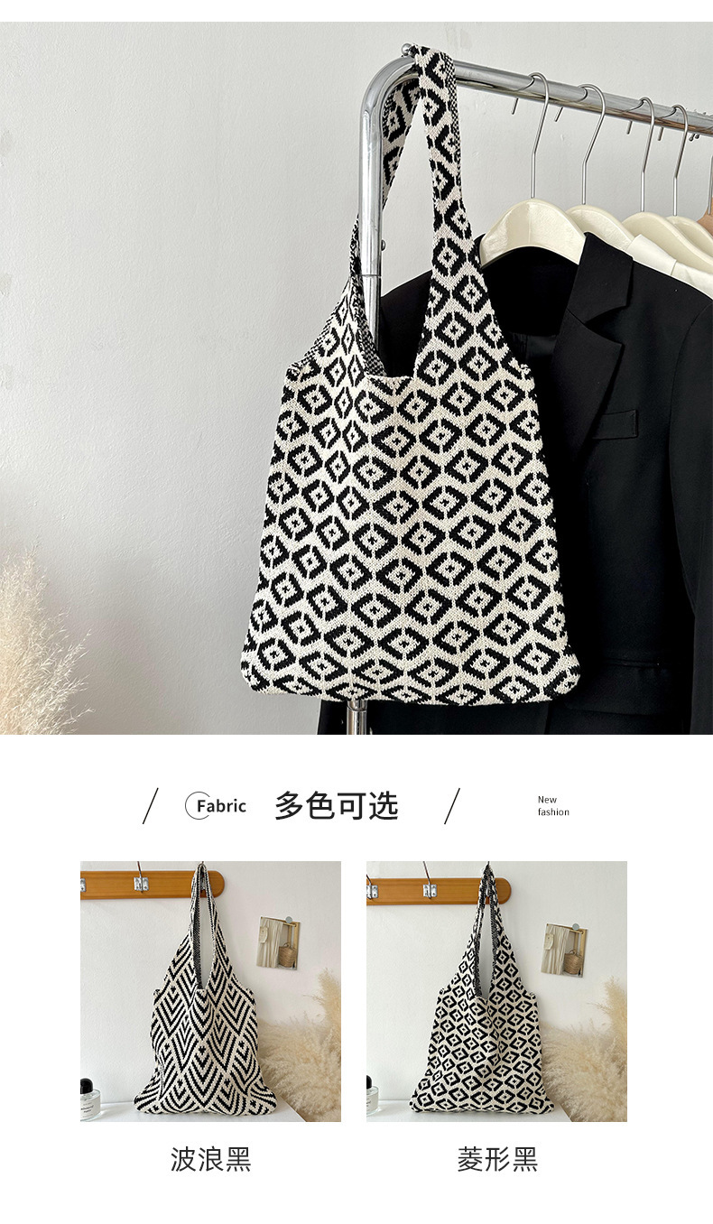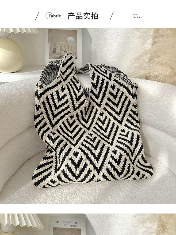 Zhong Chuxi의 같은 스타일 가방 여성 격자 무늬 니트 가방 틈새 고급 핸드백 대용량 겨드랑이 가방스토어 가기