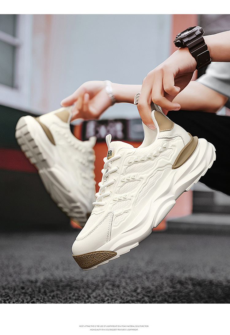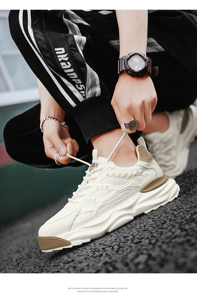 가을 남성 신발 새로운 통기성 메쉬 신발 남성용 트렌디 올매치 화이트 신발 두꺼운 밑창 운동화 캐주얼 토레 신발