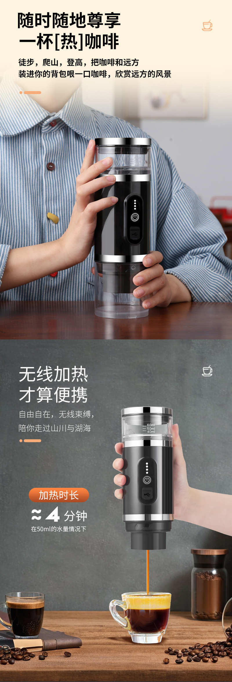 OEM/ODM 무선 가열 에스프레소 캡슐 커피 머신 C01B 소형 야외 휴대용 커피 머신스토어 가기