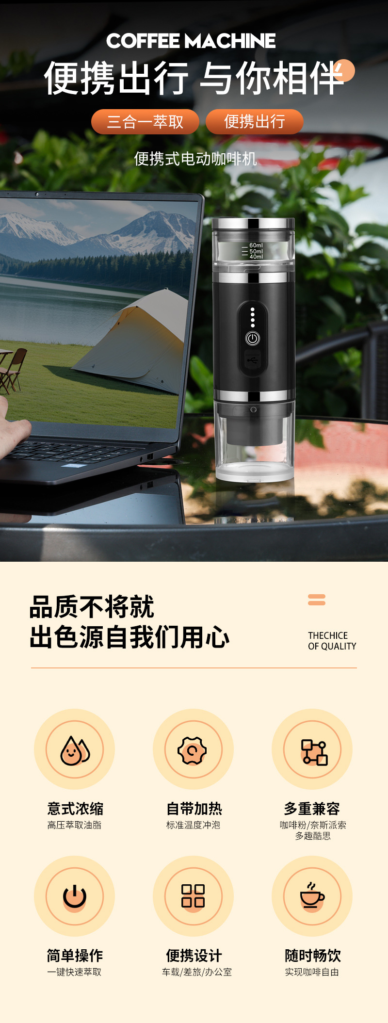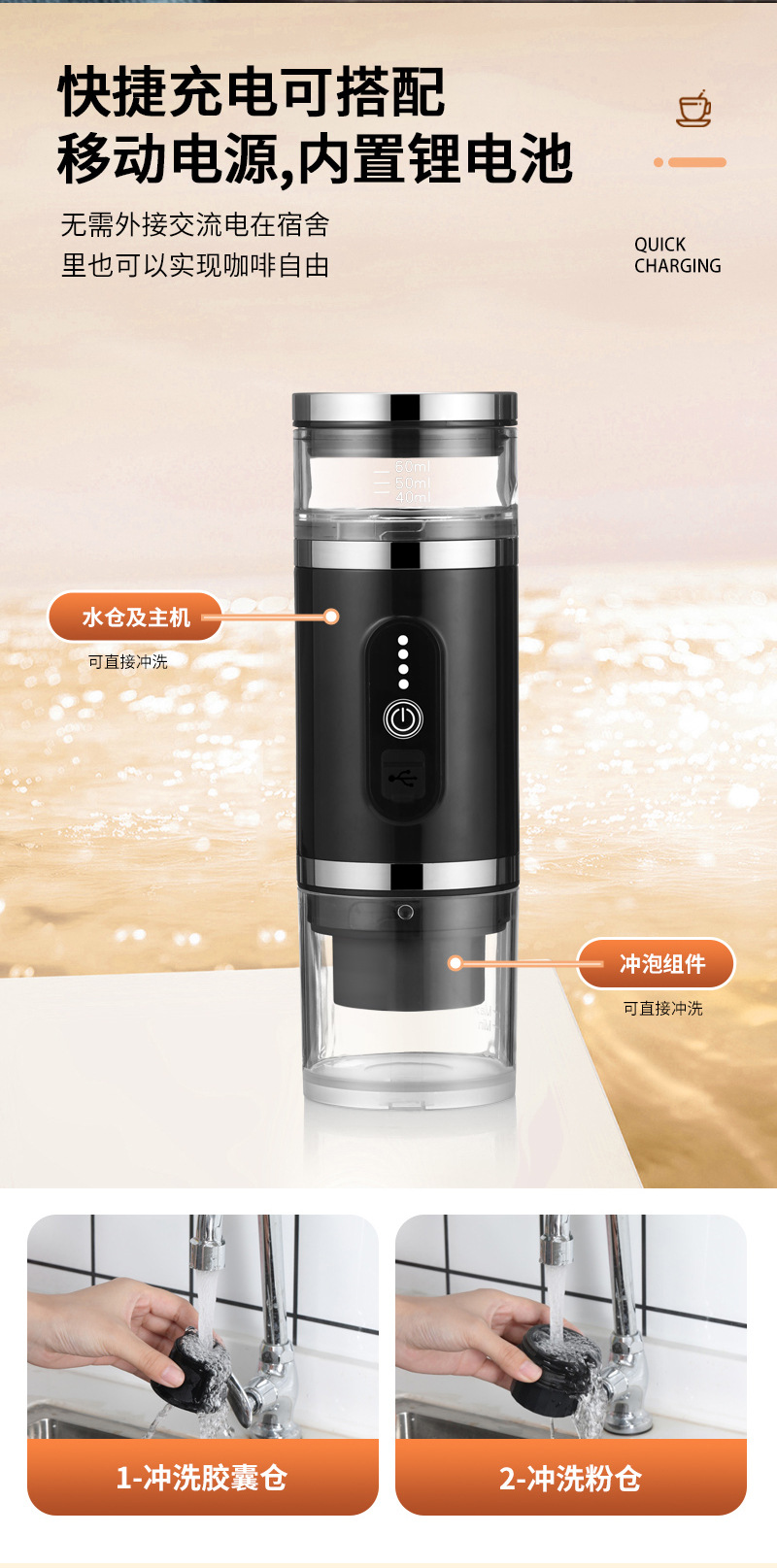 OEM/ODM 무선 가열 에스프레소 캡슐 커피 머신 C01B 소형 야외 휴대용 커피 머신