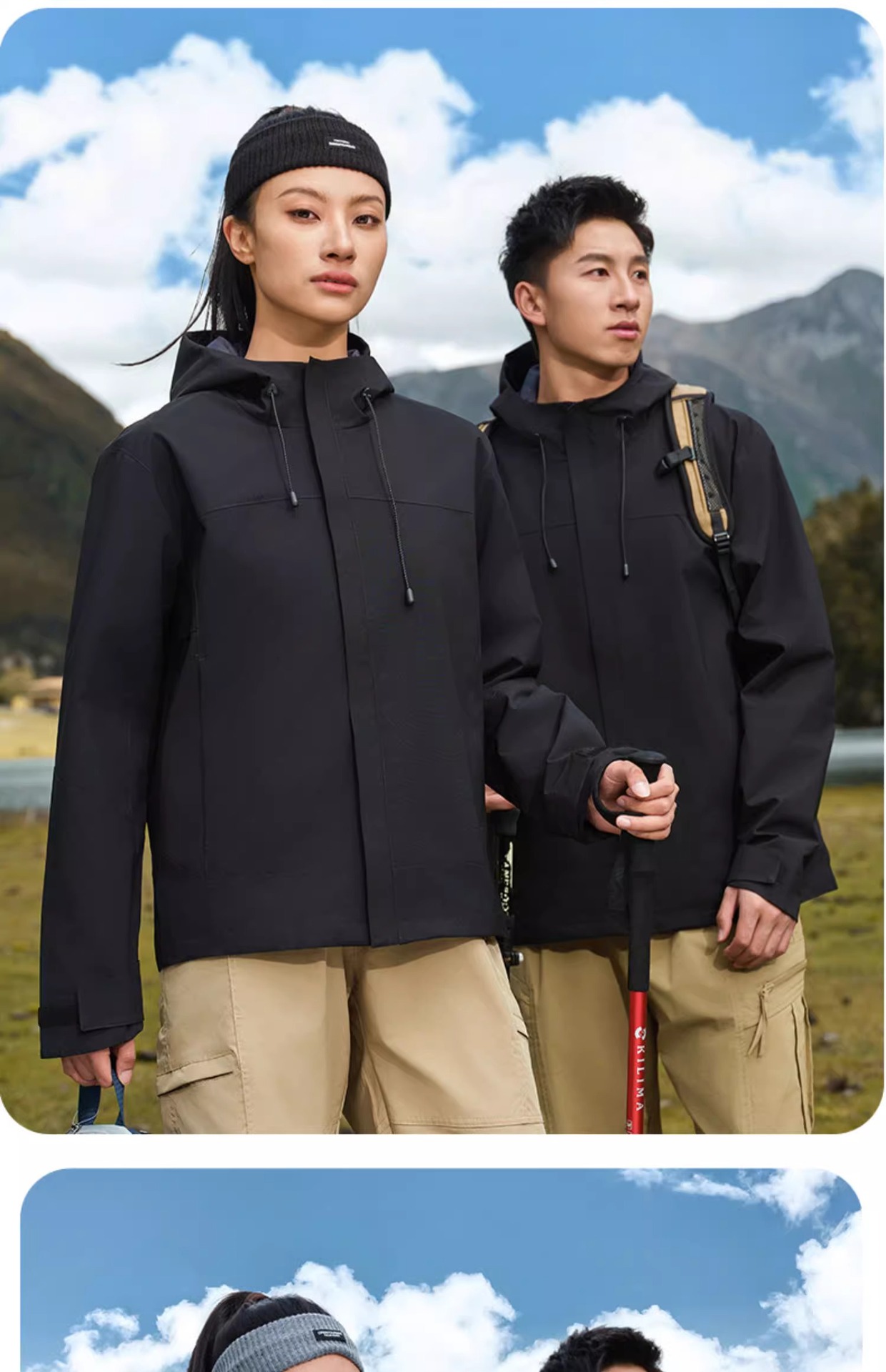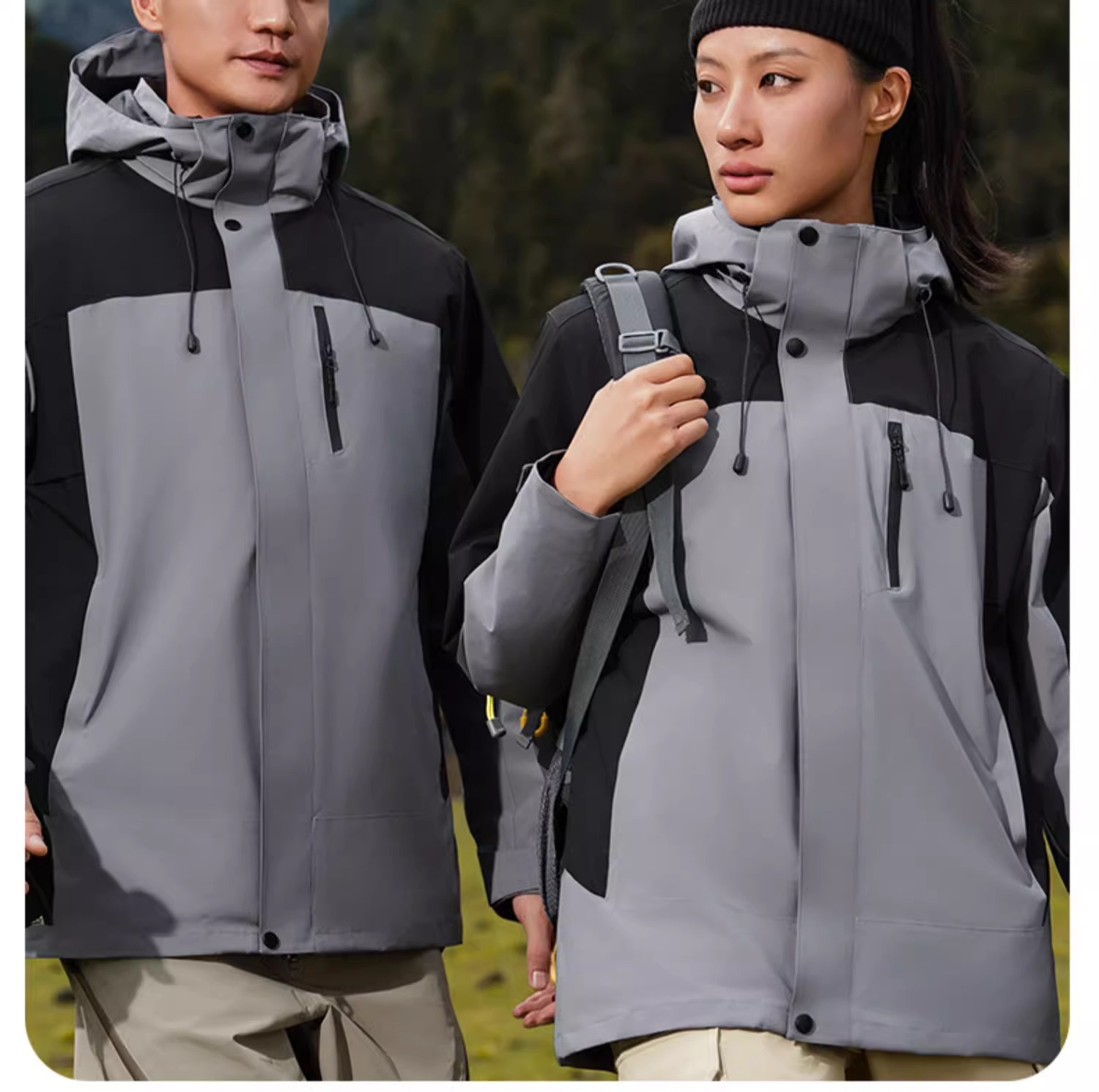 • 정전기 방지 [컬러 블록 후드] 워터 그레이와 팬텀 블랙