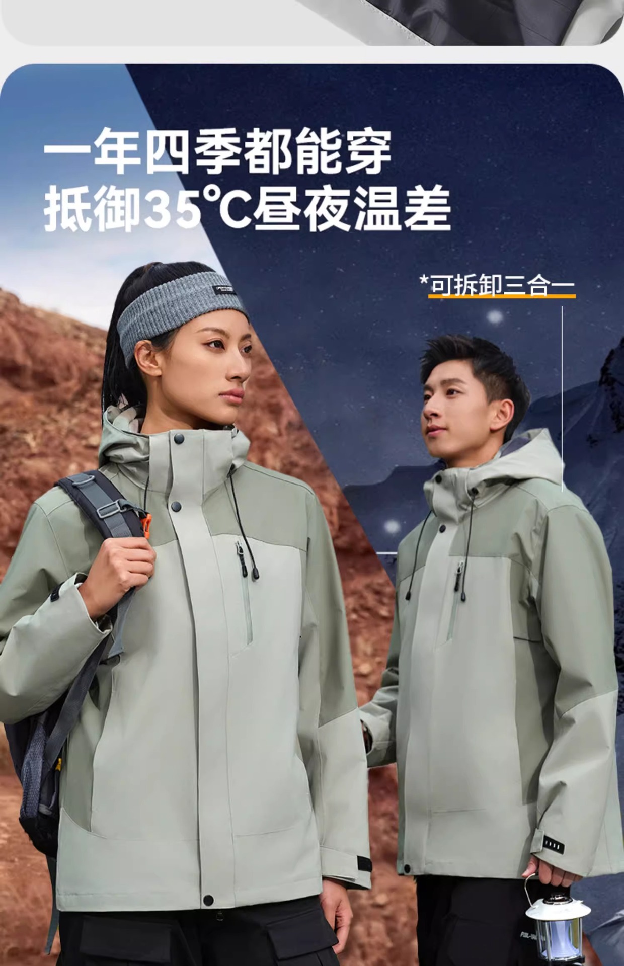 • 쓰리인원 [쉘 + 소프트쉘 라이너] 창산 그린과 팬텀 블랙