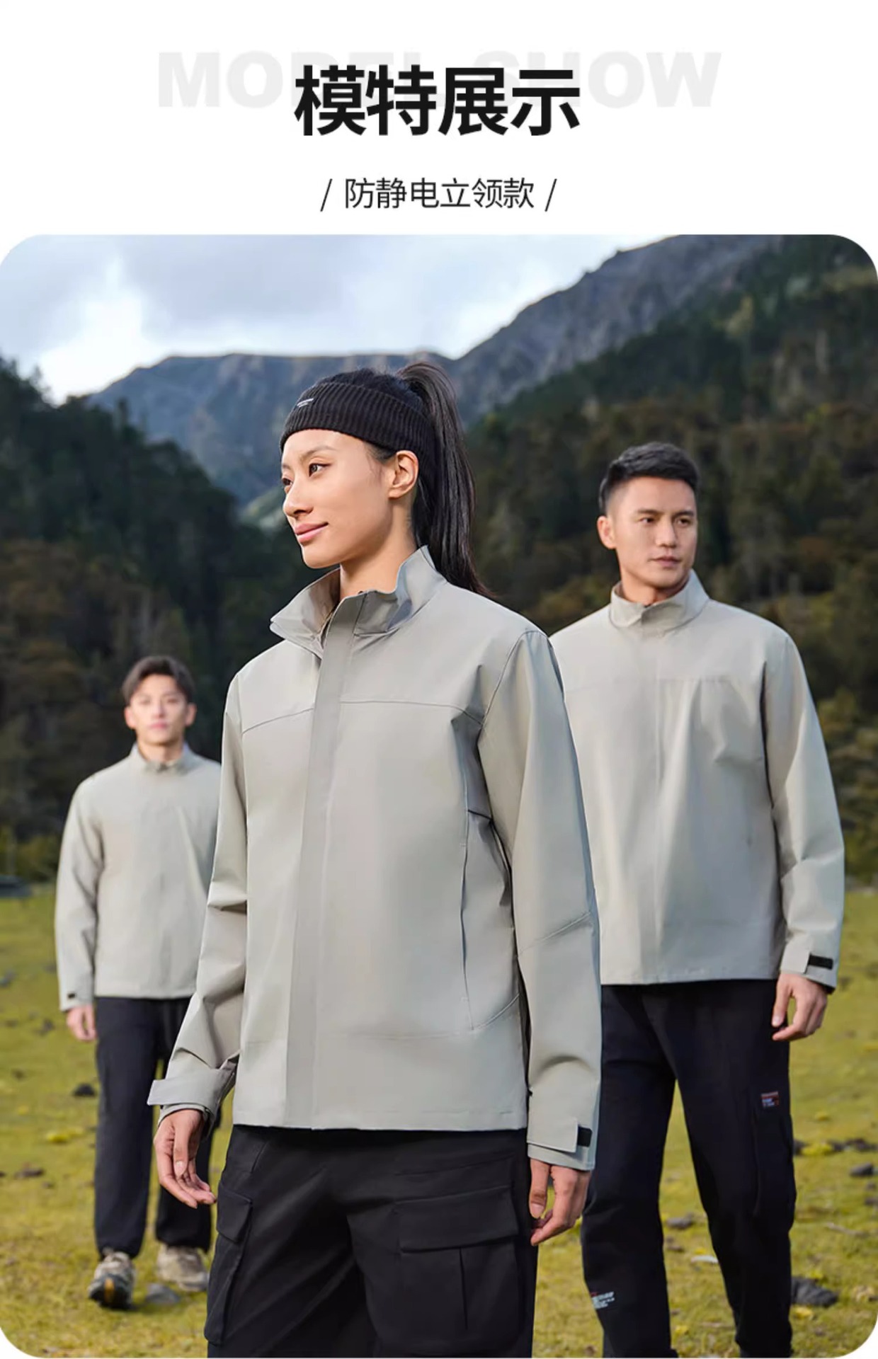 • 정전기 방지 [컬러 블록 후드] 오크 그레이와 창산 그린