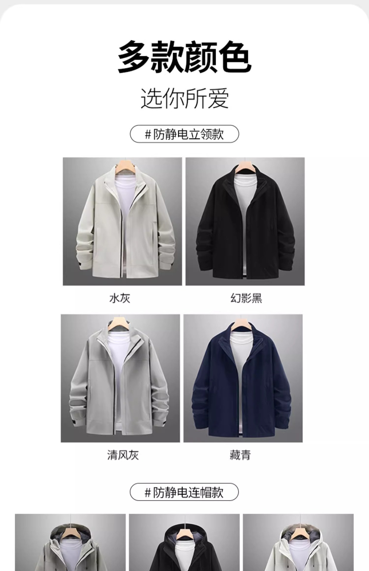 • 정전기 방지 [솔리드 컬러 후드] 팬텀 블랙