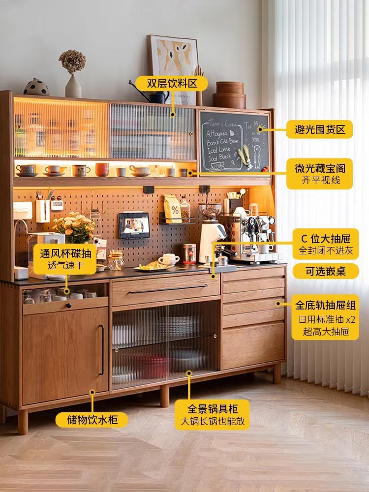 북유럽 솔리드 우드 사이드 보드 일본식 다기능 보관 캐비닛 차 캐비닛 주방 벽면 통합 상부 및 하부 캐비닛 캐비닛 캐비닛