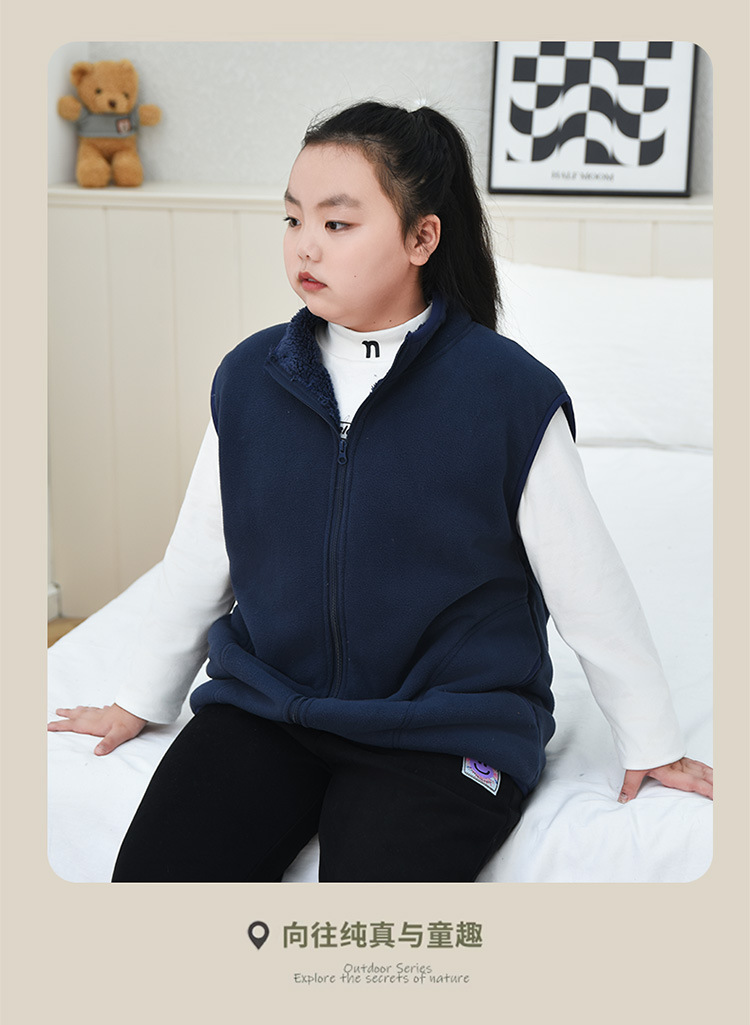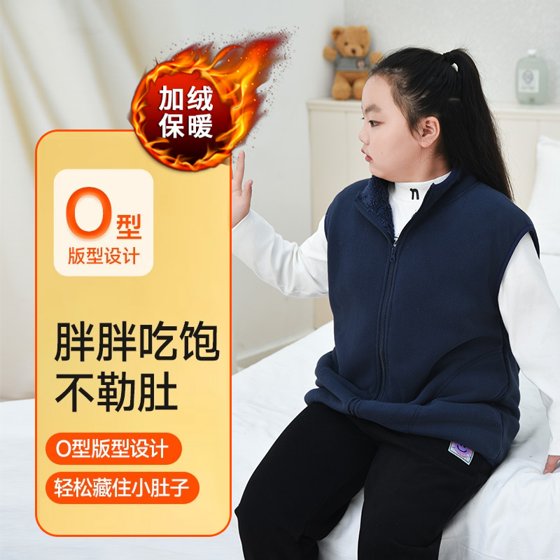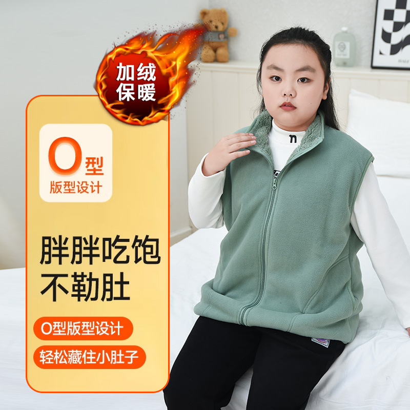 통통한 소녀 2024 새로운 단색 조끼 가을과 겨울 소녀 양털 조끼 큰 아이들 두꺼운 따뜻한 말벌스토어 가기