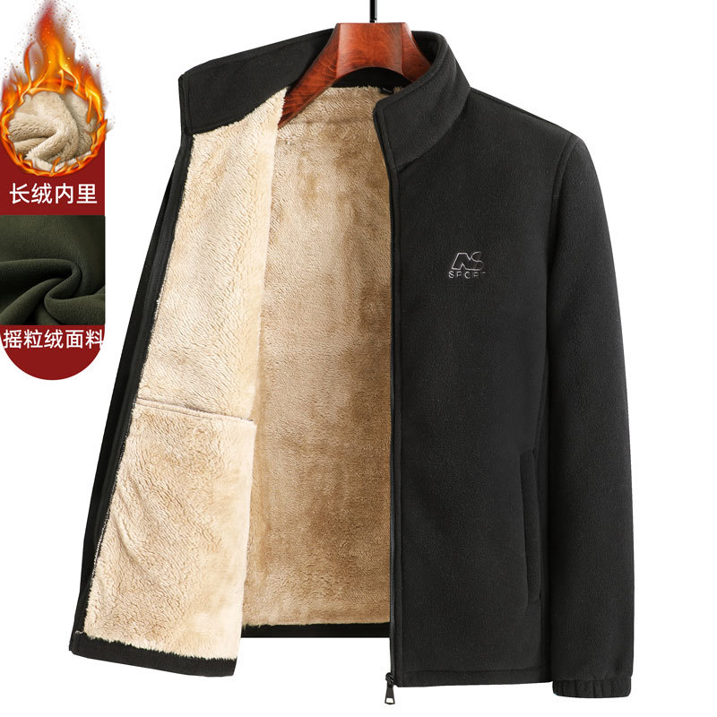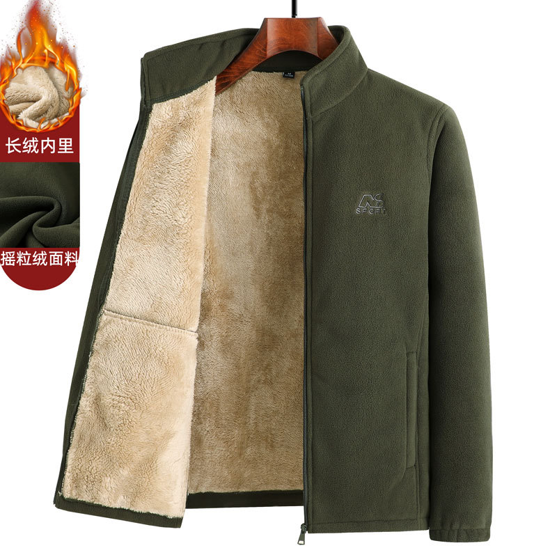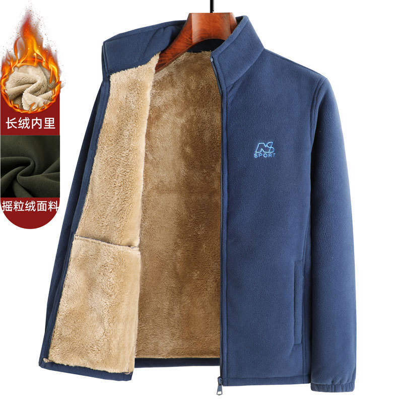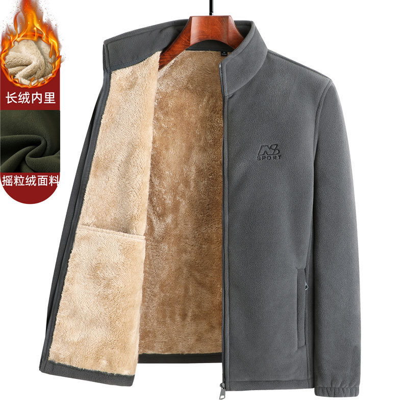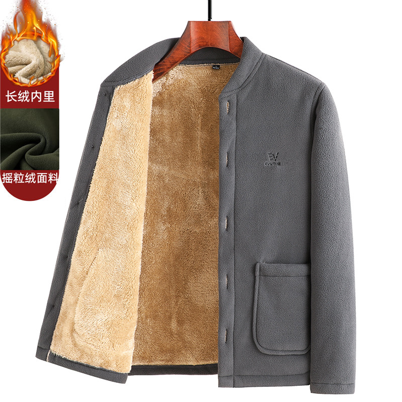 가을과 겨울 아버지 따뜻한 폴라 양털 스웨터 중년 남성 기모 카디건 중년 및 노인 양털 코트