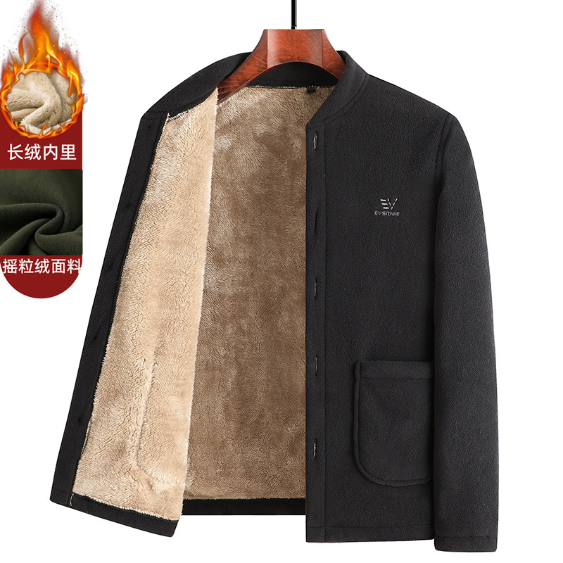 가을과 겨울 아버지 따뜻한 폴라 양털 스웨터 중년 남성 기모 카디건 중년 및 노인 양털 코트스토어 가기
