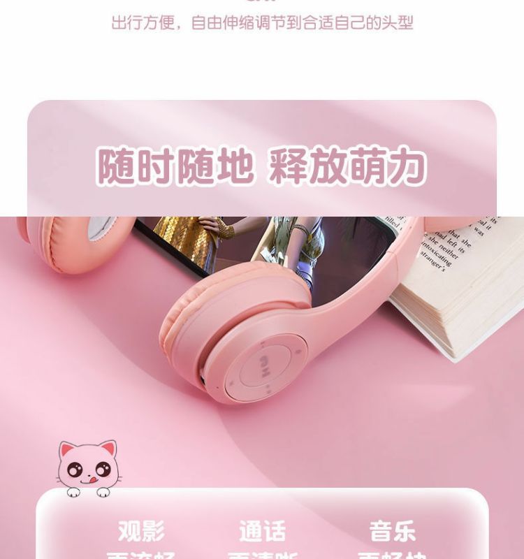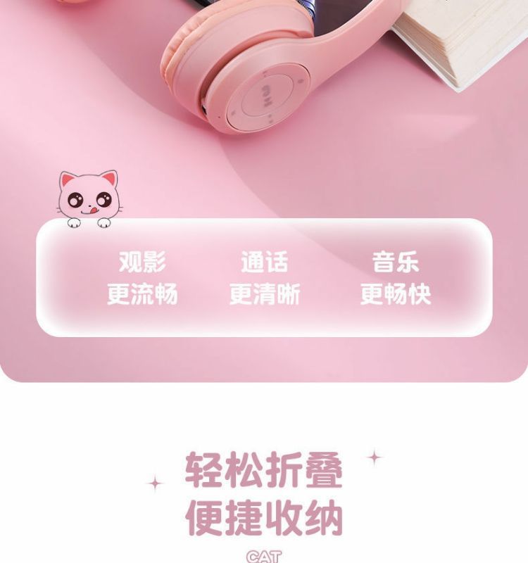 국경 간 공장 직접 판매 폭발 P47M 재고 고양이 귀 발광 헤드셋 무선 블루투스 헤드셋 학생 선물스토어 가기