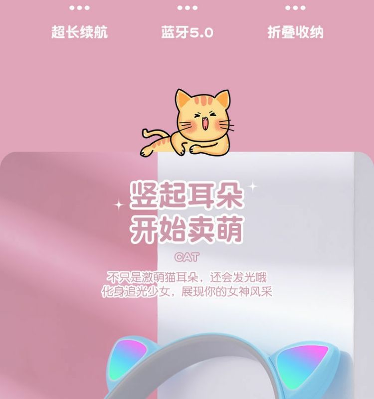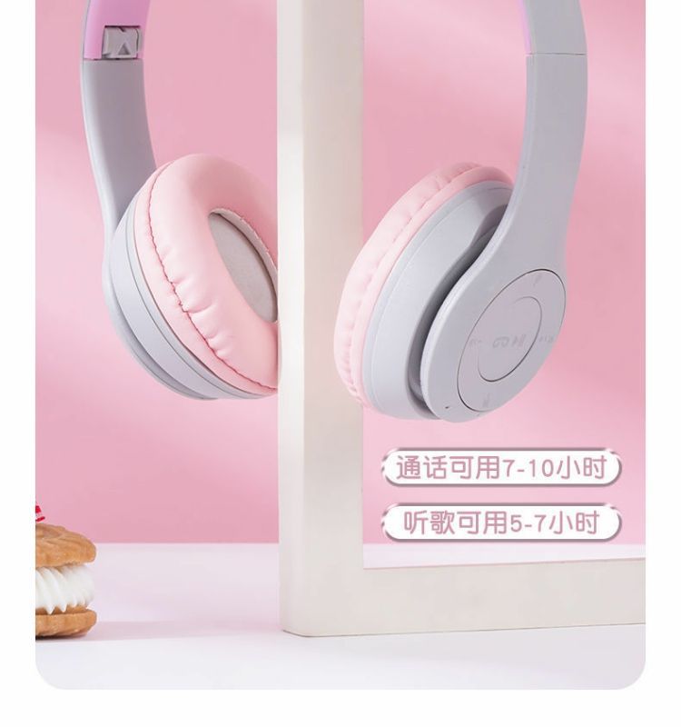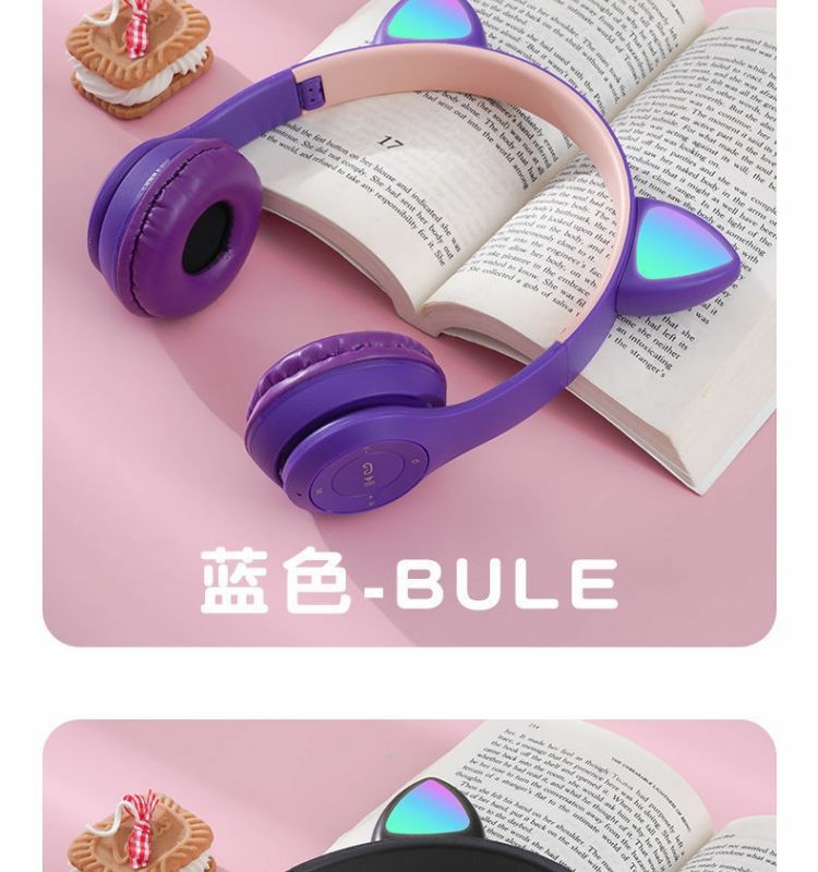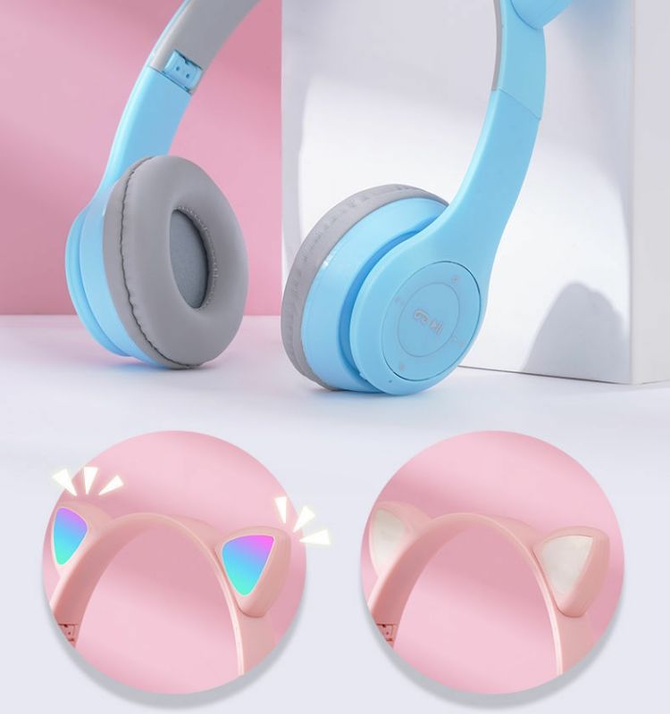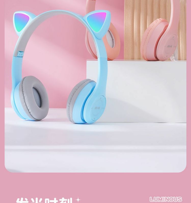 국경 간 공장 직접 판매 폭발 P47M 재고 고양이 귀 발광 헤드셋 무선 블루투스 헤드셋 학생 선물