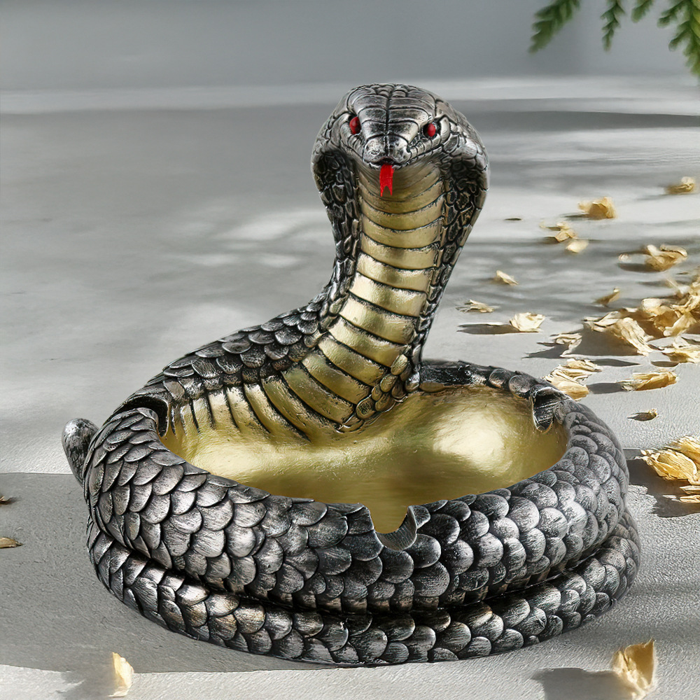 국경 독점 수지 코브라 재떨이 장식품 홈 시뮬레이션 동물 뱀 재떨이 바탕 화면 장식