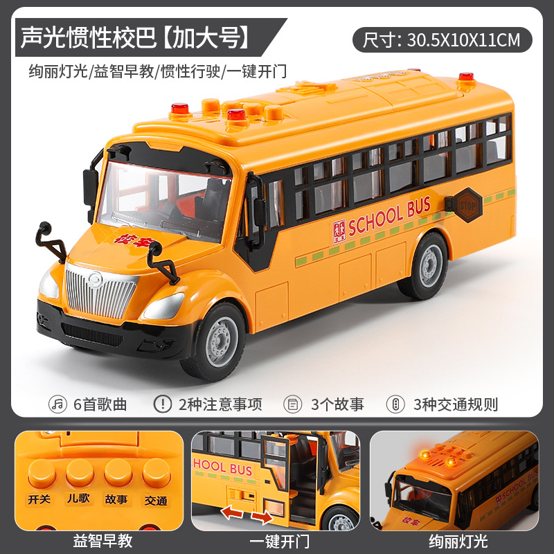 대형 스쿨버스 장난감 소년 어린이용 시뮬레이션 음악 스토리 버스 자동차 아기 모델 관성 버스 무료 배송