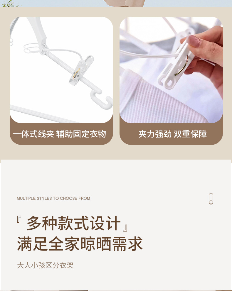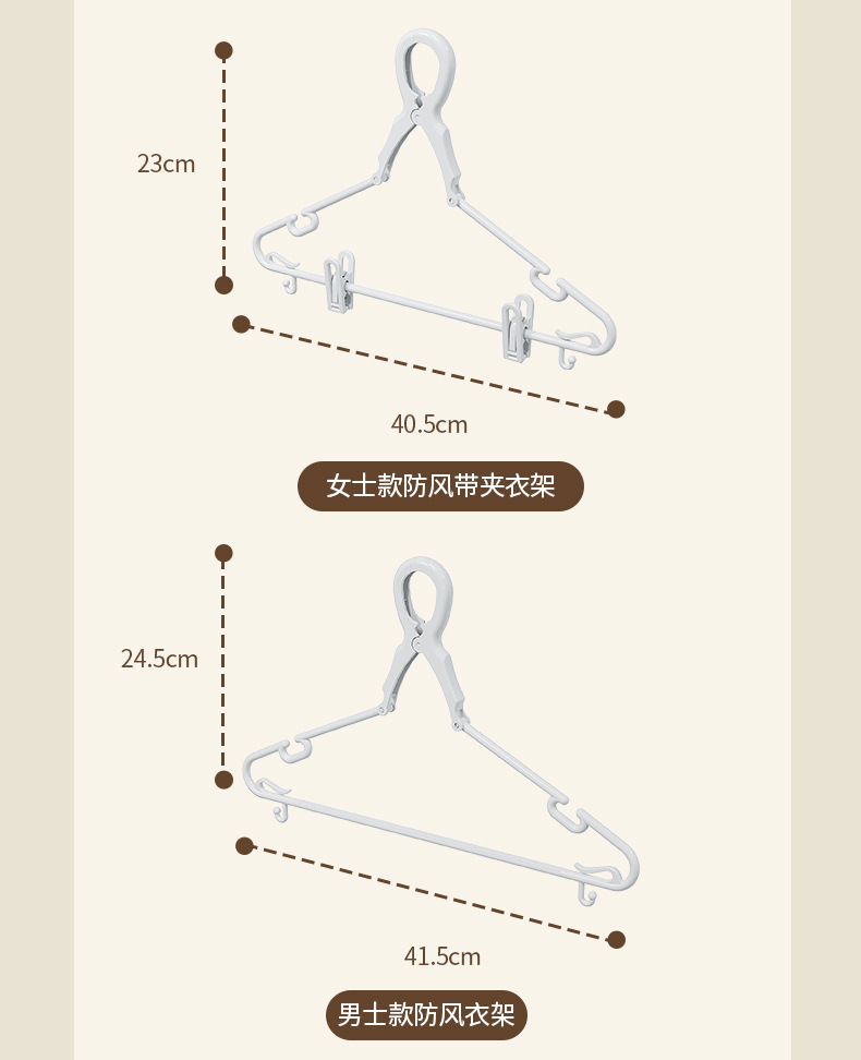 • 클립이 달린 여성용 방풍 옷걸이(3개)