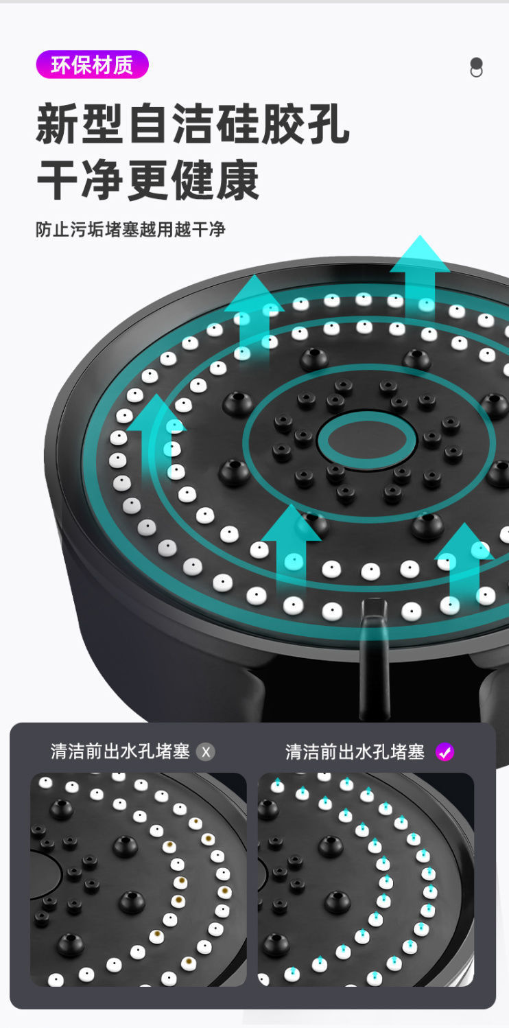 • F형 - 304 스테인리스 스틸 샤워 헤드 [스퍼차저 엘레강트 블랙]