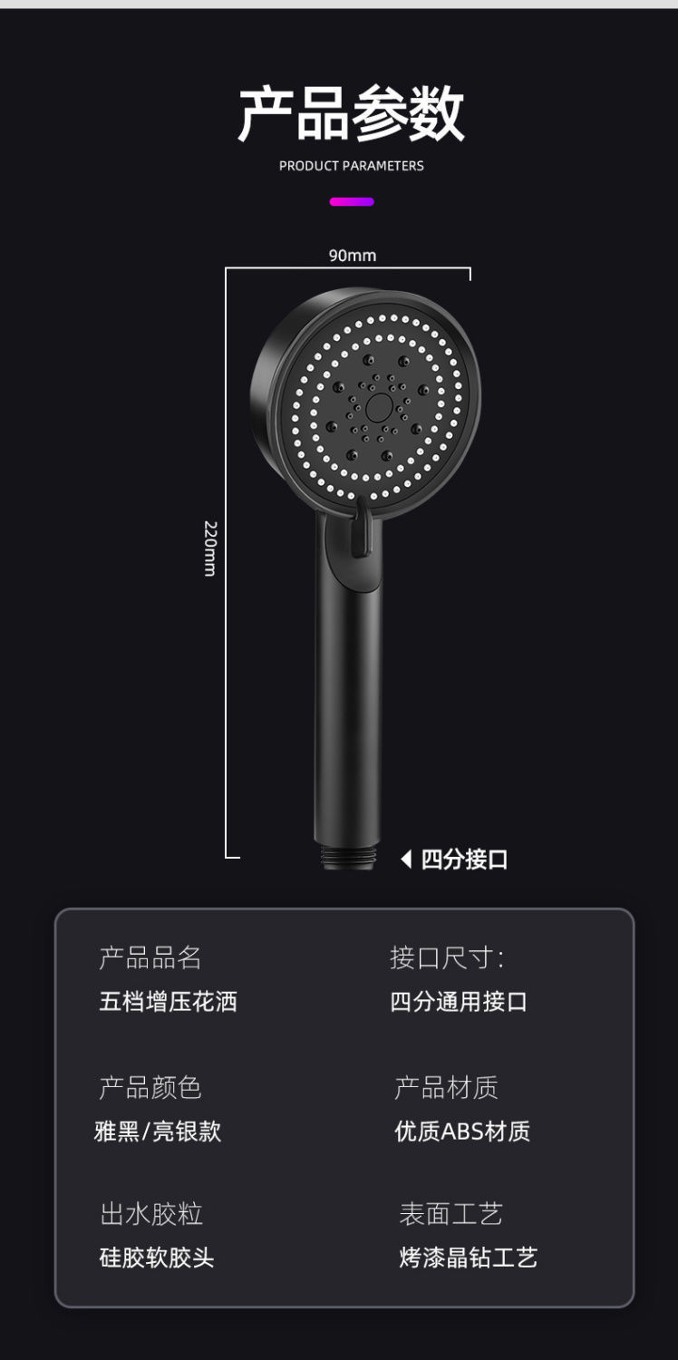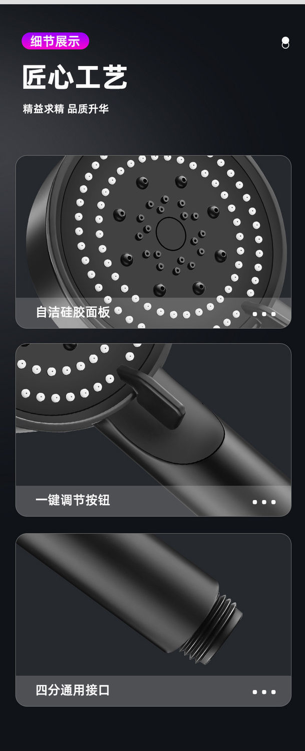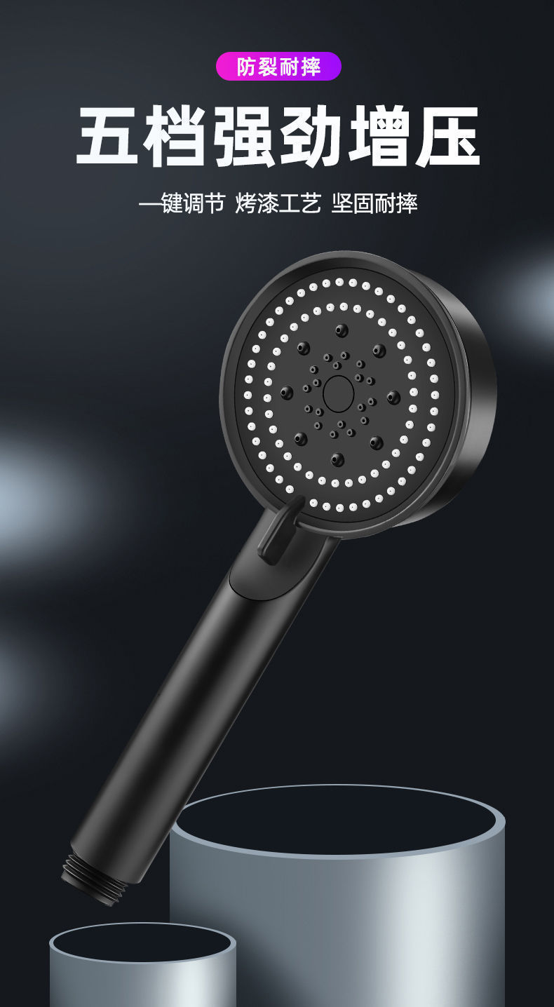 • 모델 B - 블랙 워리어 샤워 헤드 [5단 원클릭 워터스톱]
