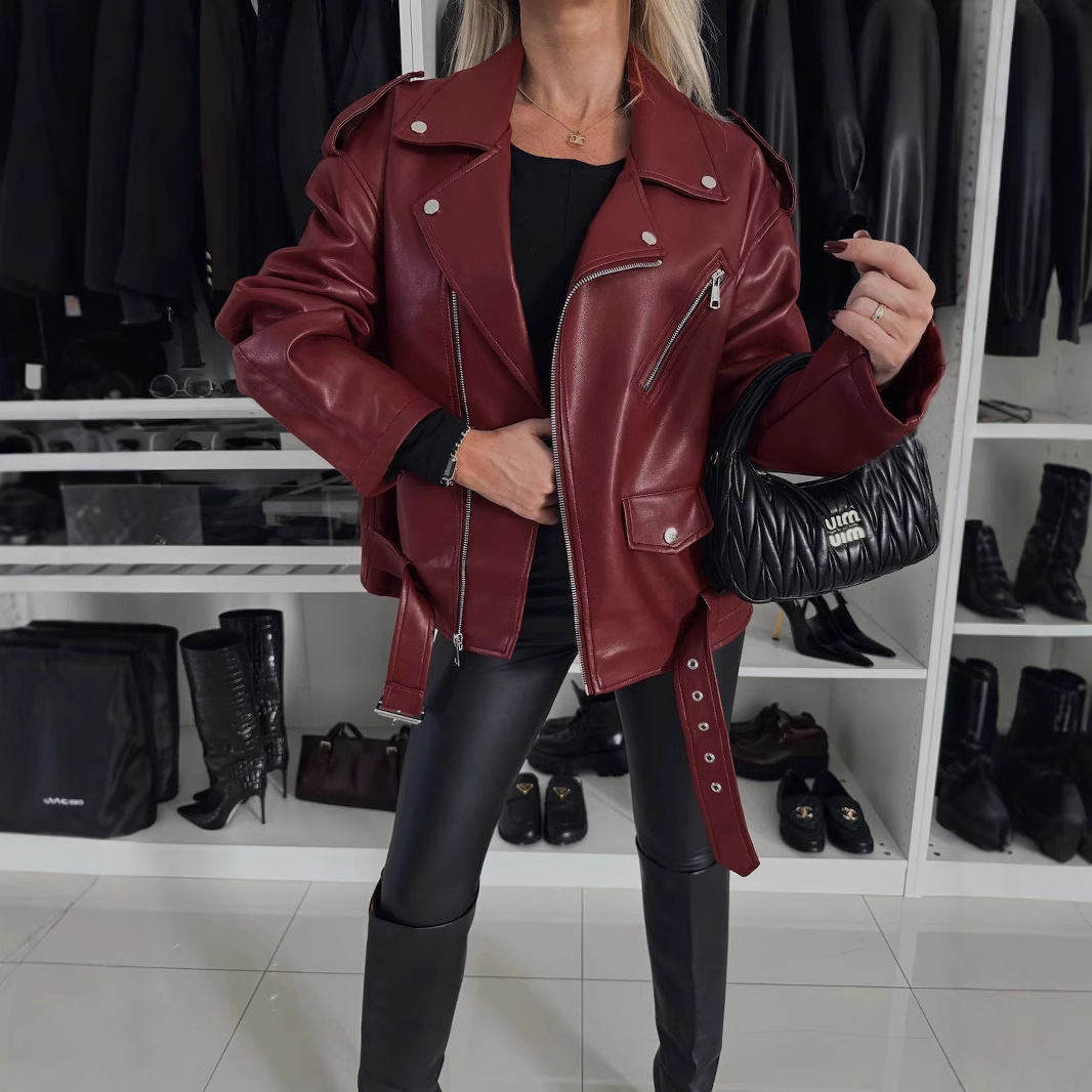 2025 가을 겨울 러시아 유럽 미국 해외 무역 아마존 여성복 신상 PU 가죽 재킷 여성용 상의스토어 가기
