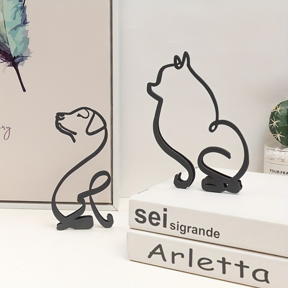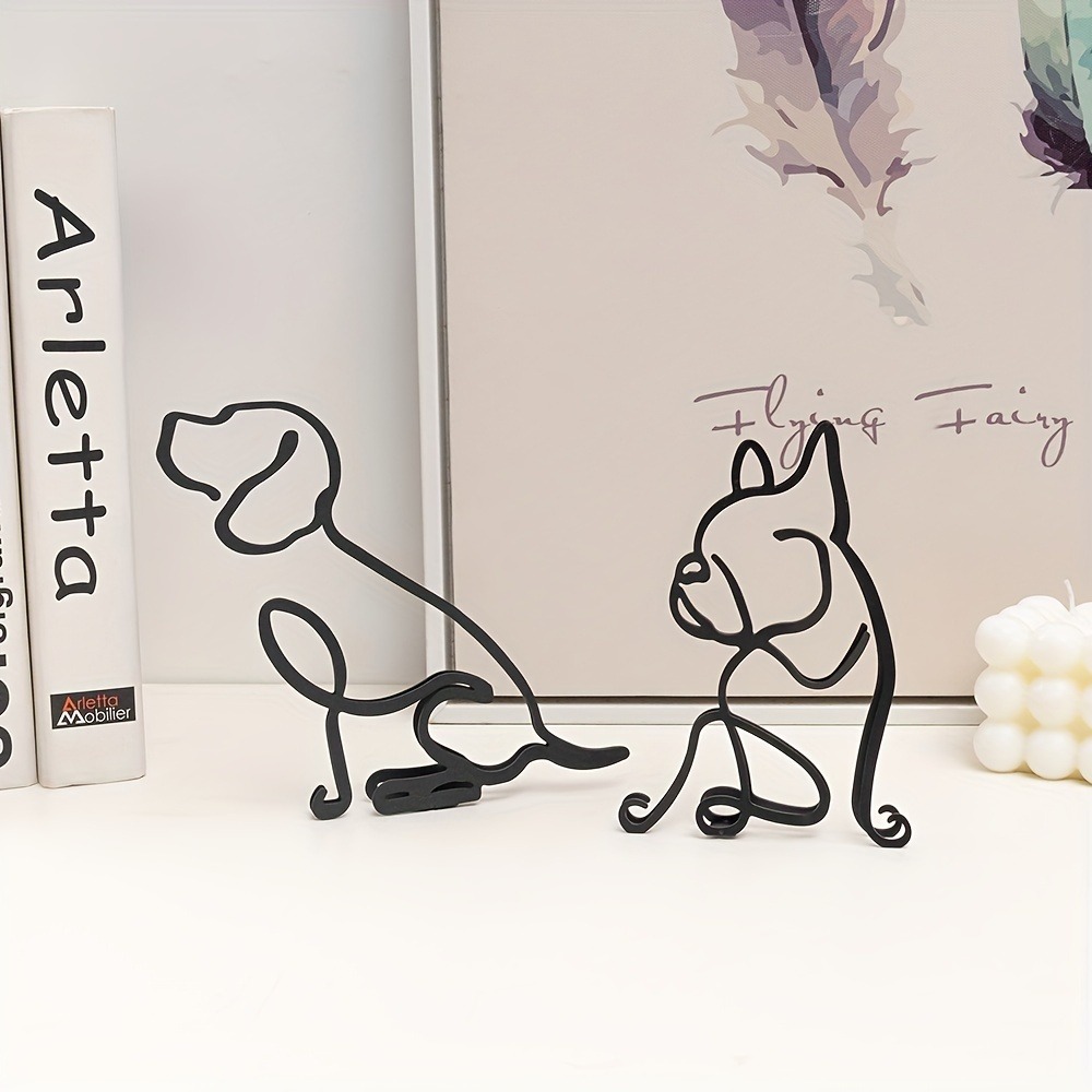 만화 창조적 인 데스크탑 장식품 현대 철 개 모델 간단한 3D 라인 공예 거실 장식스토어 가기
