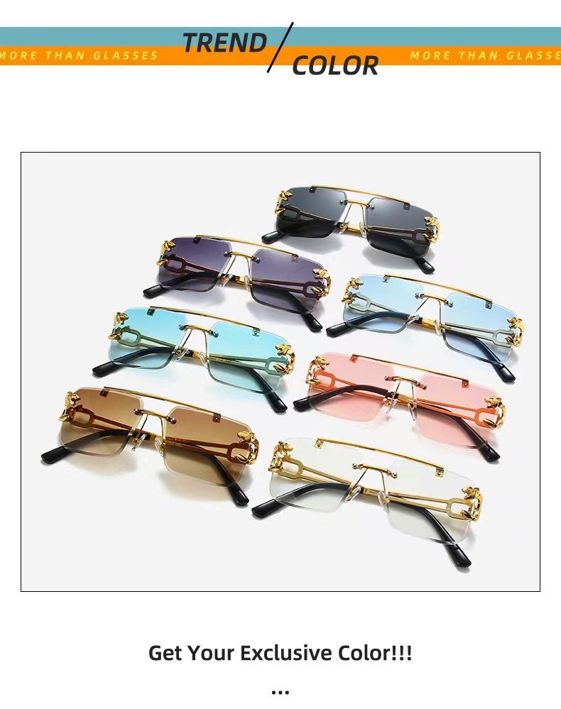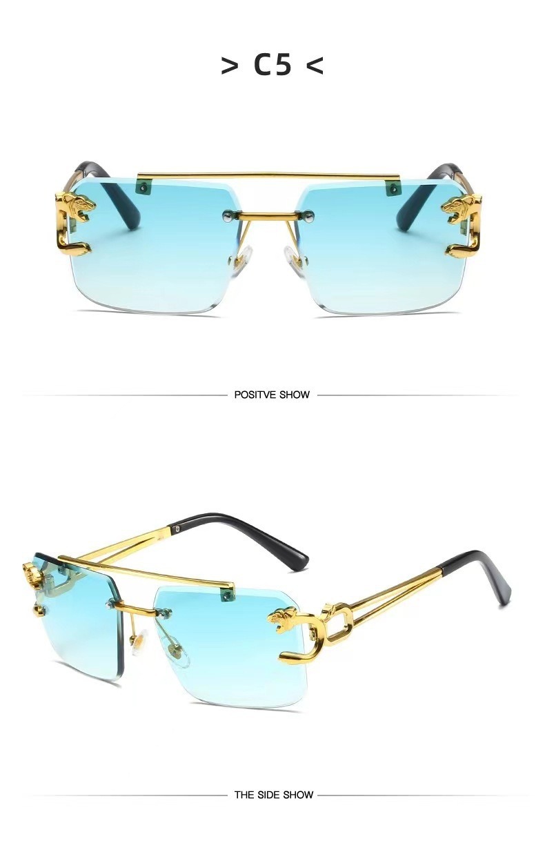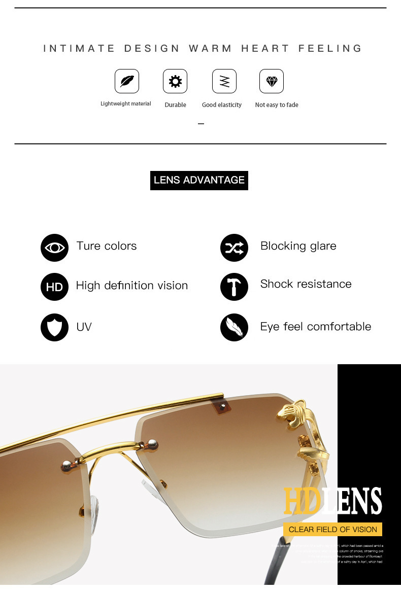 유럽과 미국 국경 간 성격 상자 프레임리스 더블 빔 레오파드 헤드 선글라스 패션 운전 태양 보호 차양 안경스토어 가기