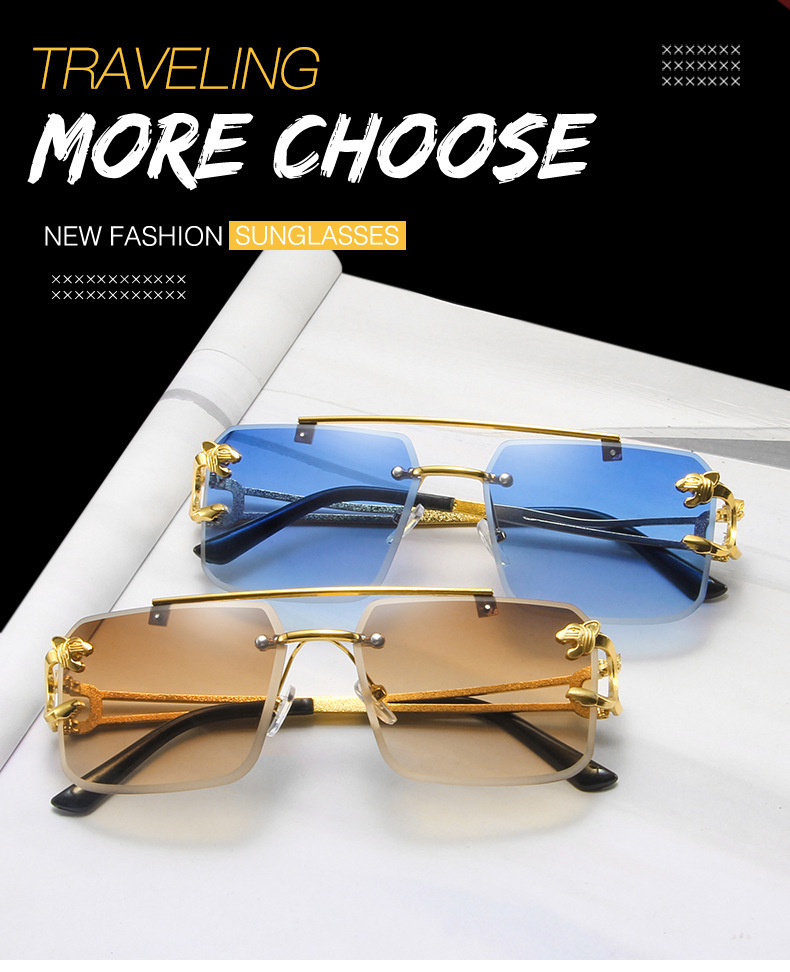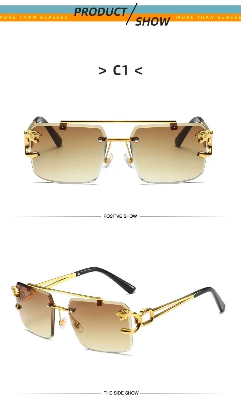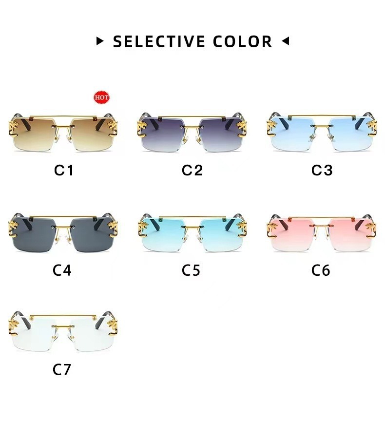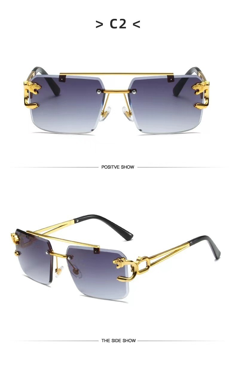 유럽과 미국 국경 간 성격 상자 프레임리스 더블 빔 레오파드 헤드 선글라스 패션 운전 태양 보호 차양 안경스토어 가기
