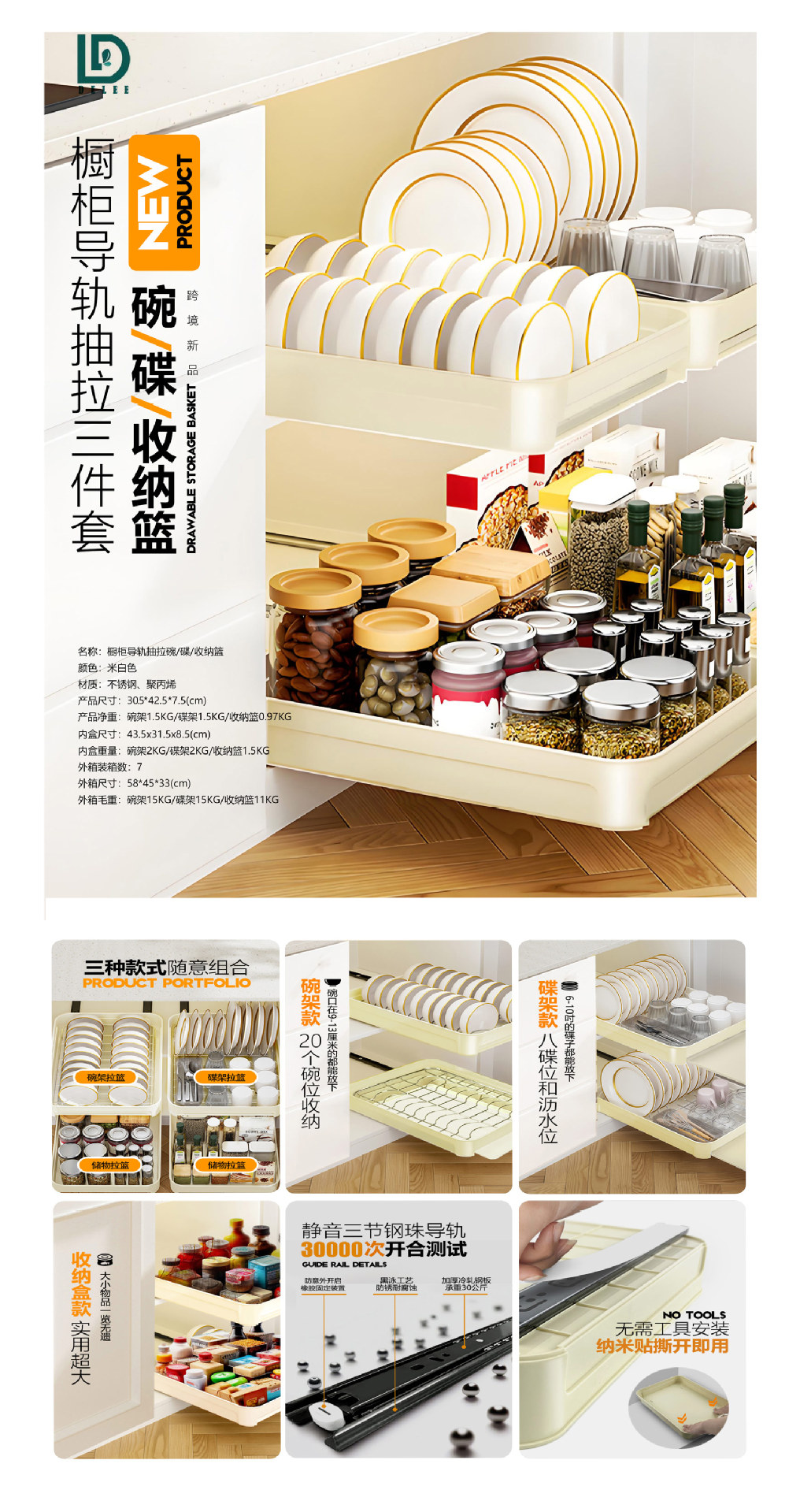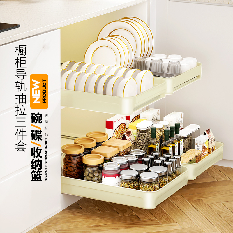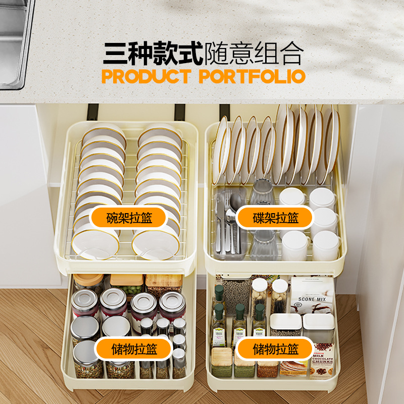 구멍없는 스테인레스 스틸 당김 바구니 주방 캐비닛 당김 바구니 서랍 당김 바구니 스토리지 랙 슬라이드 레일 접시 랙 스토리지 랙