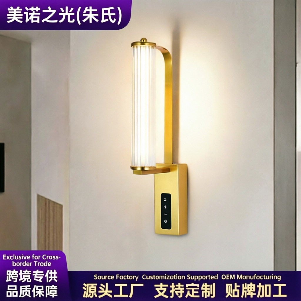 벽 램프 거실 침실 램프 간단한 복고풍 침대 옆 램프 TV 소파 배경 2024 벽 새로운 스마트 스위치
