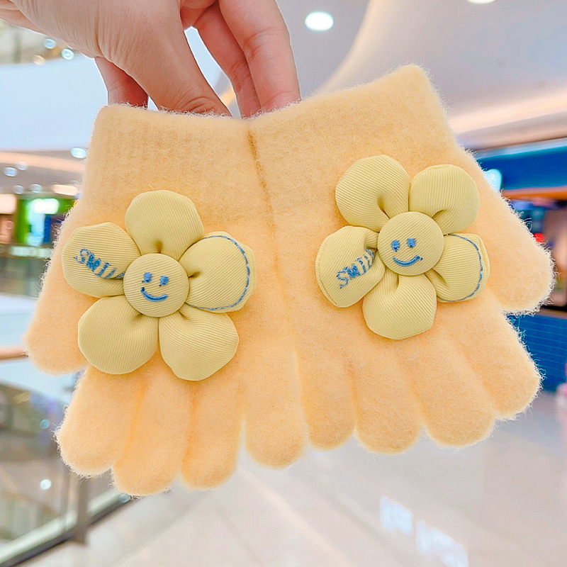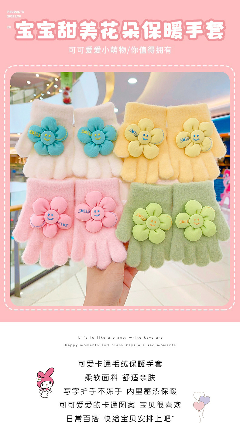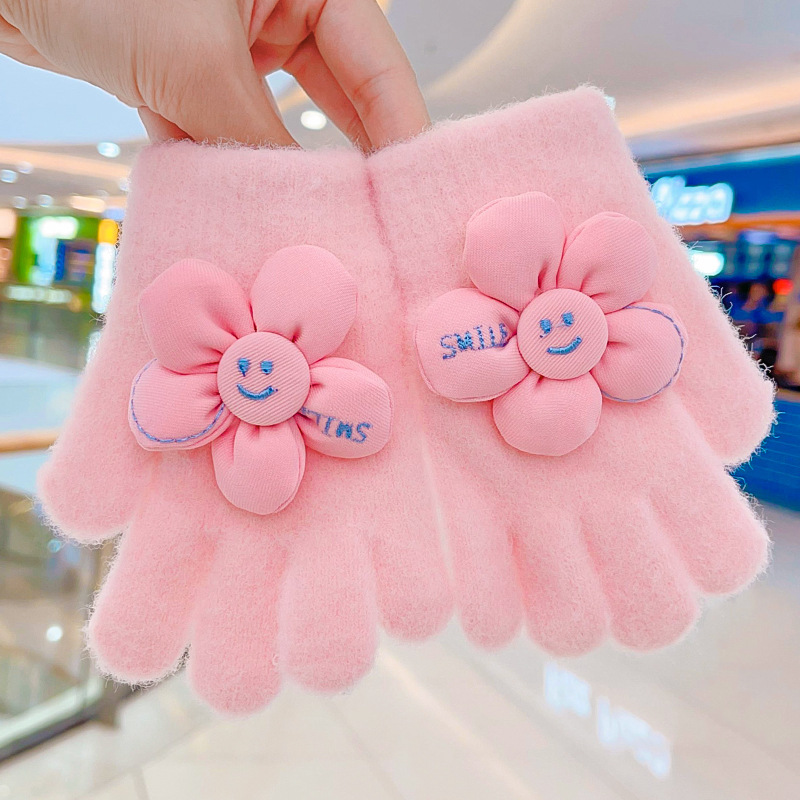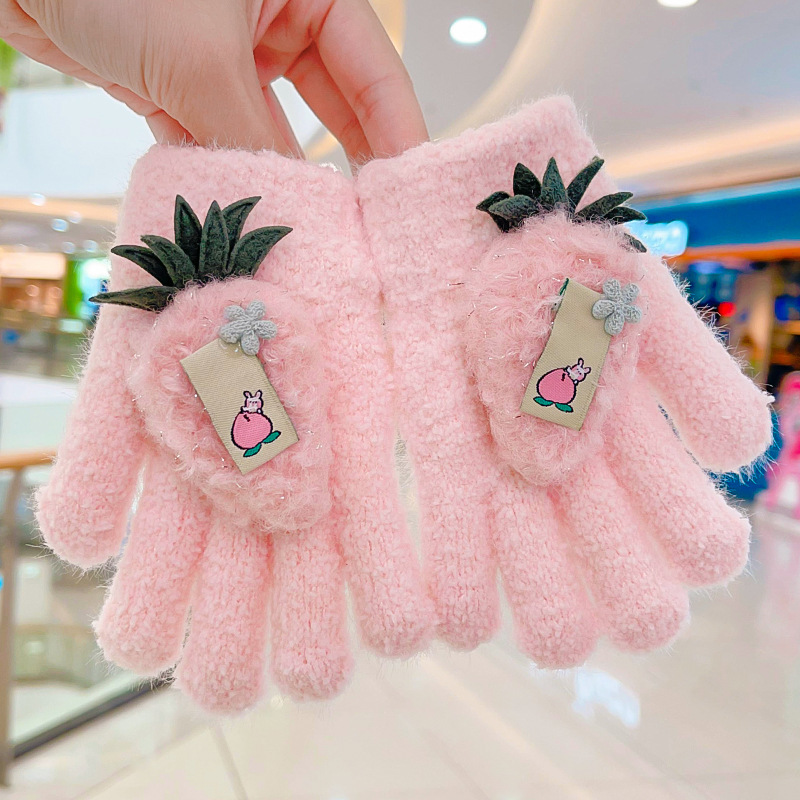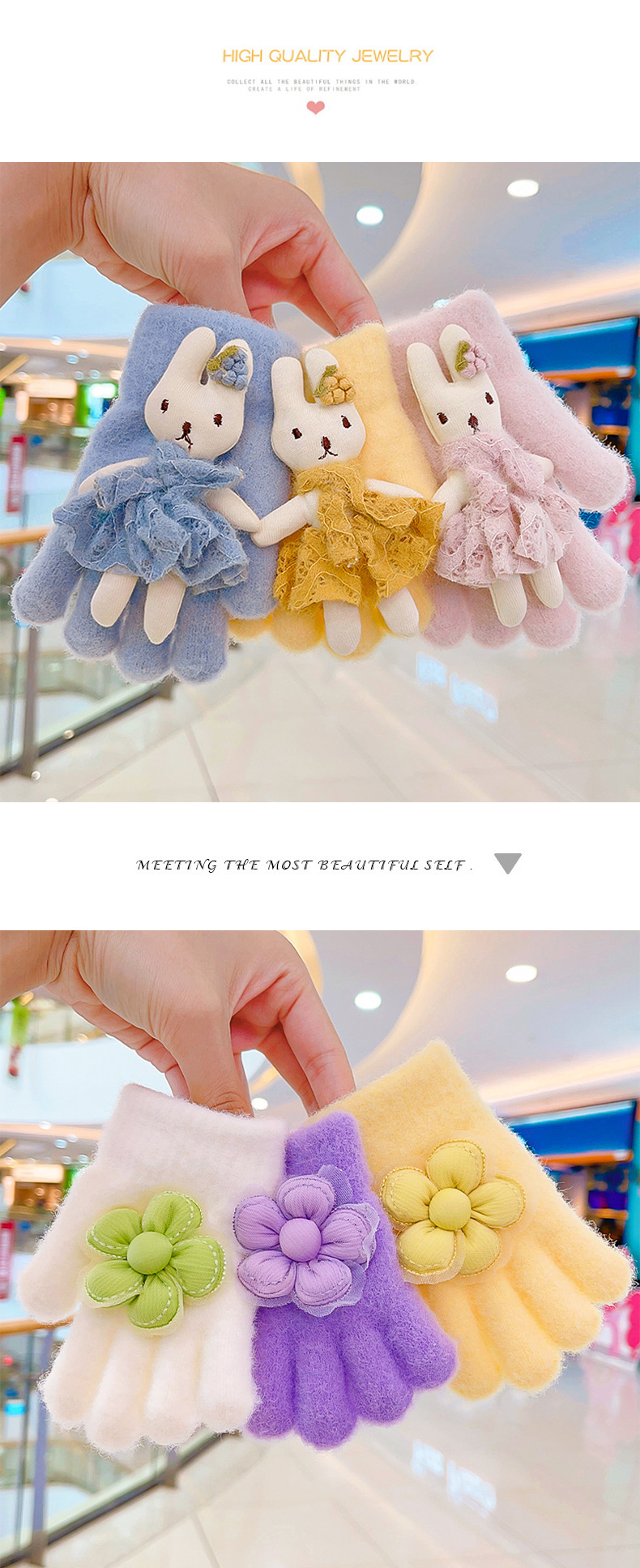 새로운 겨울 봉제 토끼 장갑 냉증 두꺼운 귀여운 아기 꽃 다섯 손가락 야외 니트 모든 것을 포함하는 야외스토어 가기