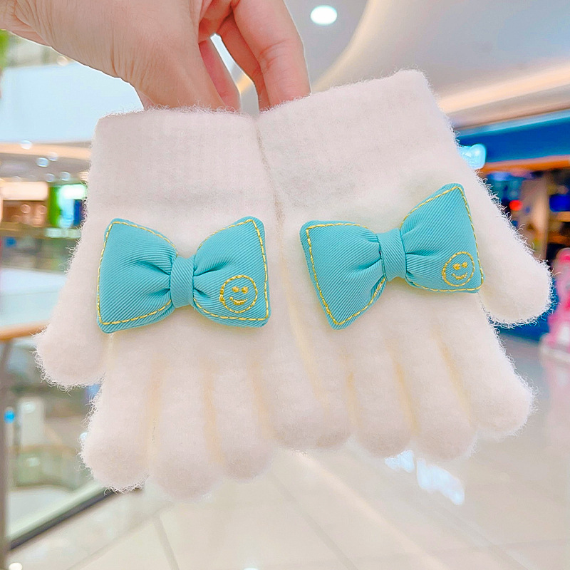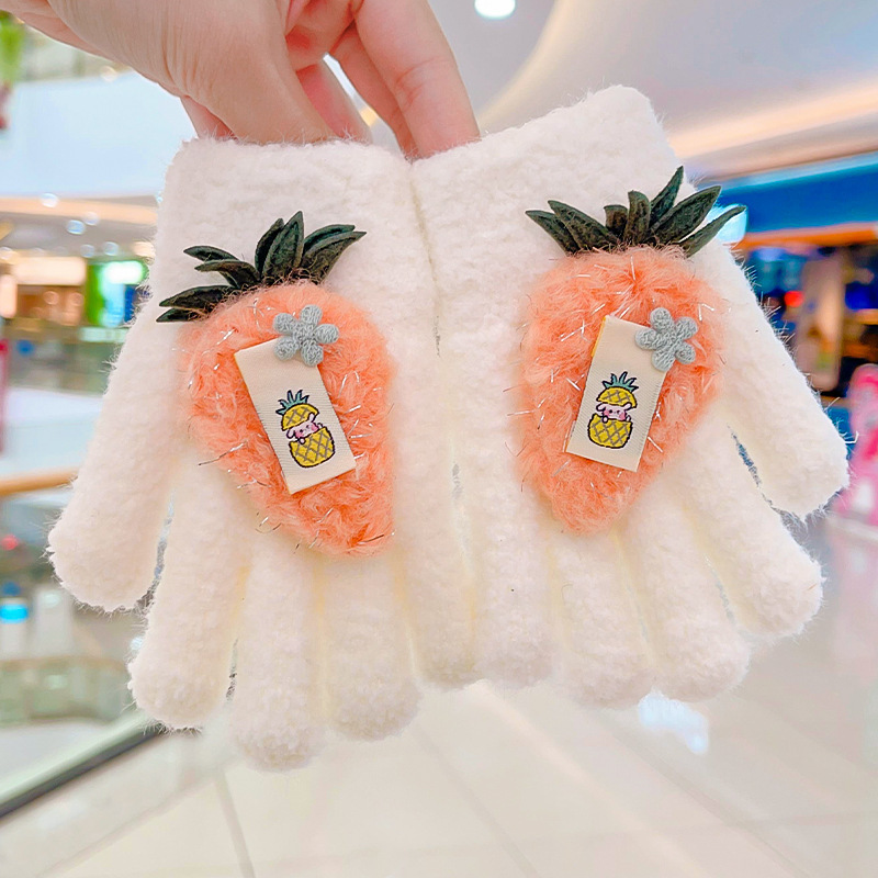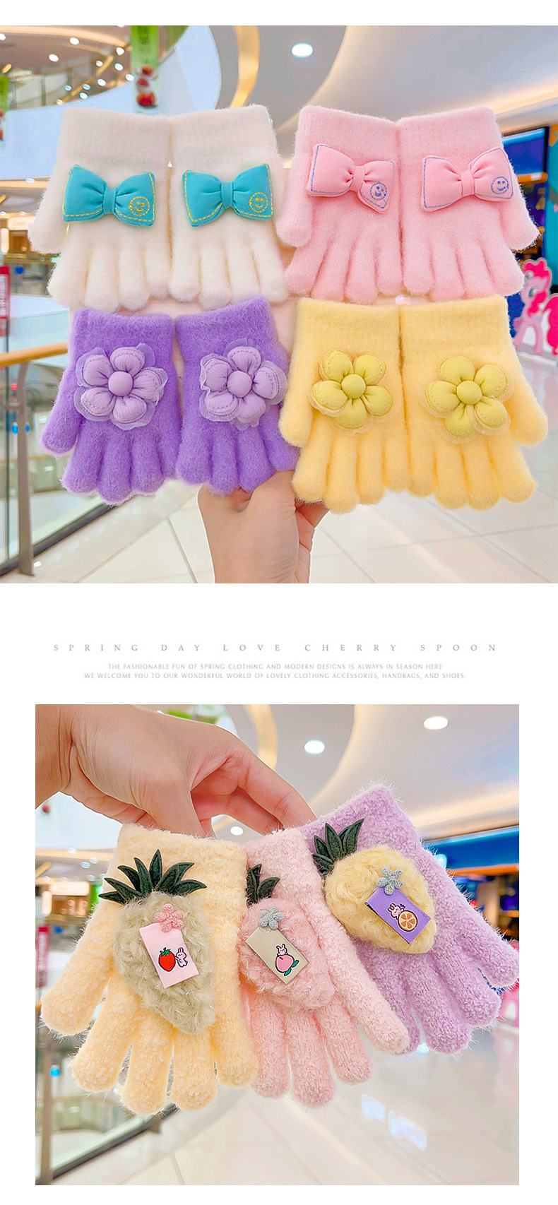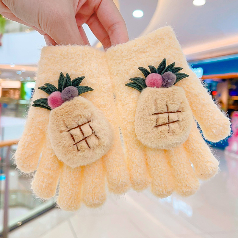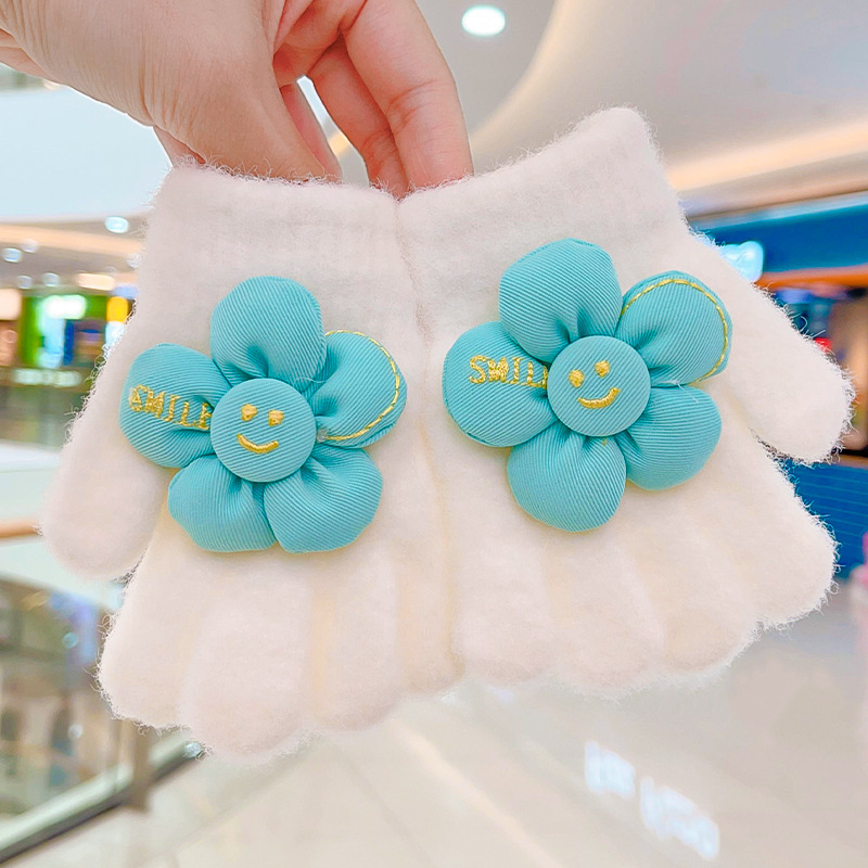 새로운 겨울 봉제 토끼 장갑 냉증 두꺼운 귀여운 아기 꽃 다섯 손가락 야외 니트 모든 것을 포함하는 야외스토어 가기
