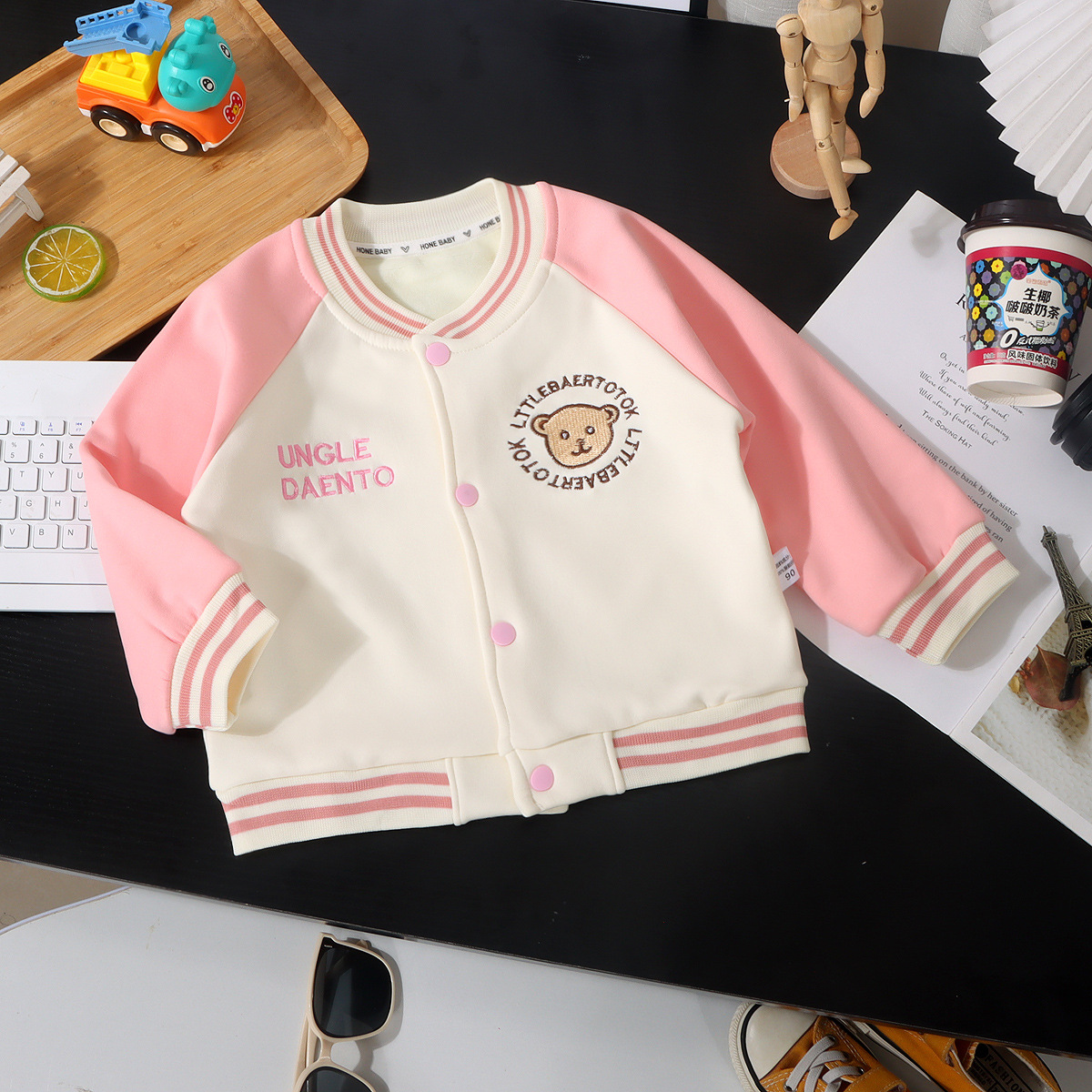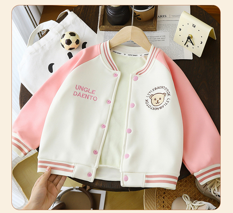 가을과 겨울 소녀 따뜻한 양털 재킷 새로운 자수 아카데미 스타일 어린이 야구 옷 느슨한 올매치 탑