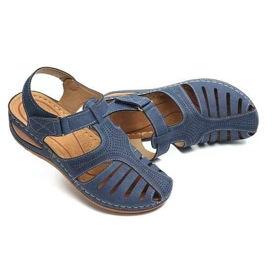 2024 년 여름 새로운 국경 플러스 사이즈 유럽과 미국의 매일 캐주얼 바오 터우 미드 힐 벨크로 여성용 웨지 샌들