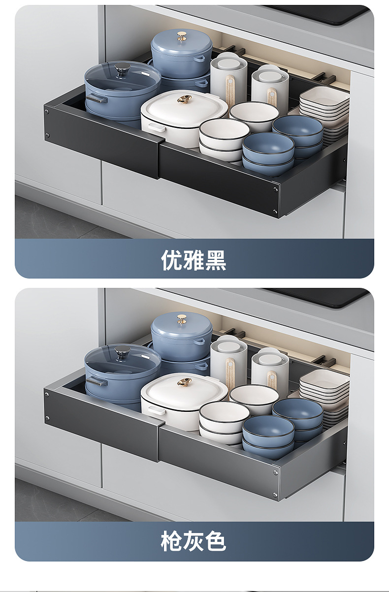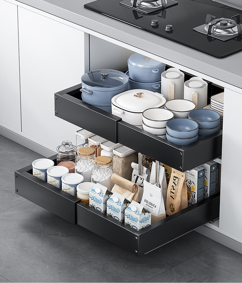 엄선된 두꺼운 신축형 캐비닛 서랍바구니, 싱크대 아래 서랍형 수납선반, 그릇 바구니, 주방 수납용품