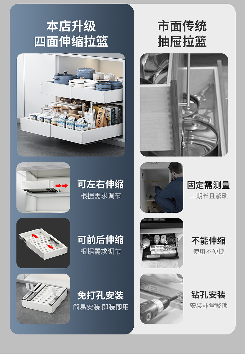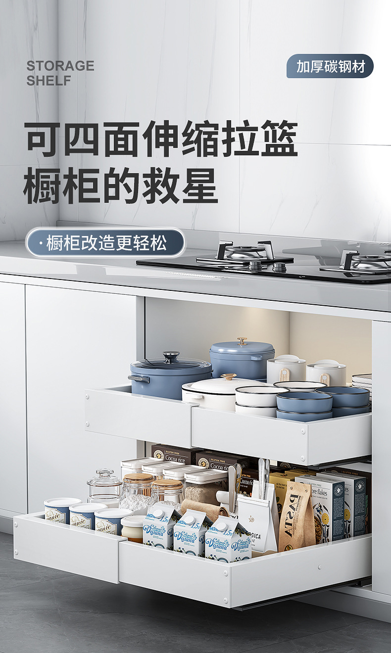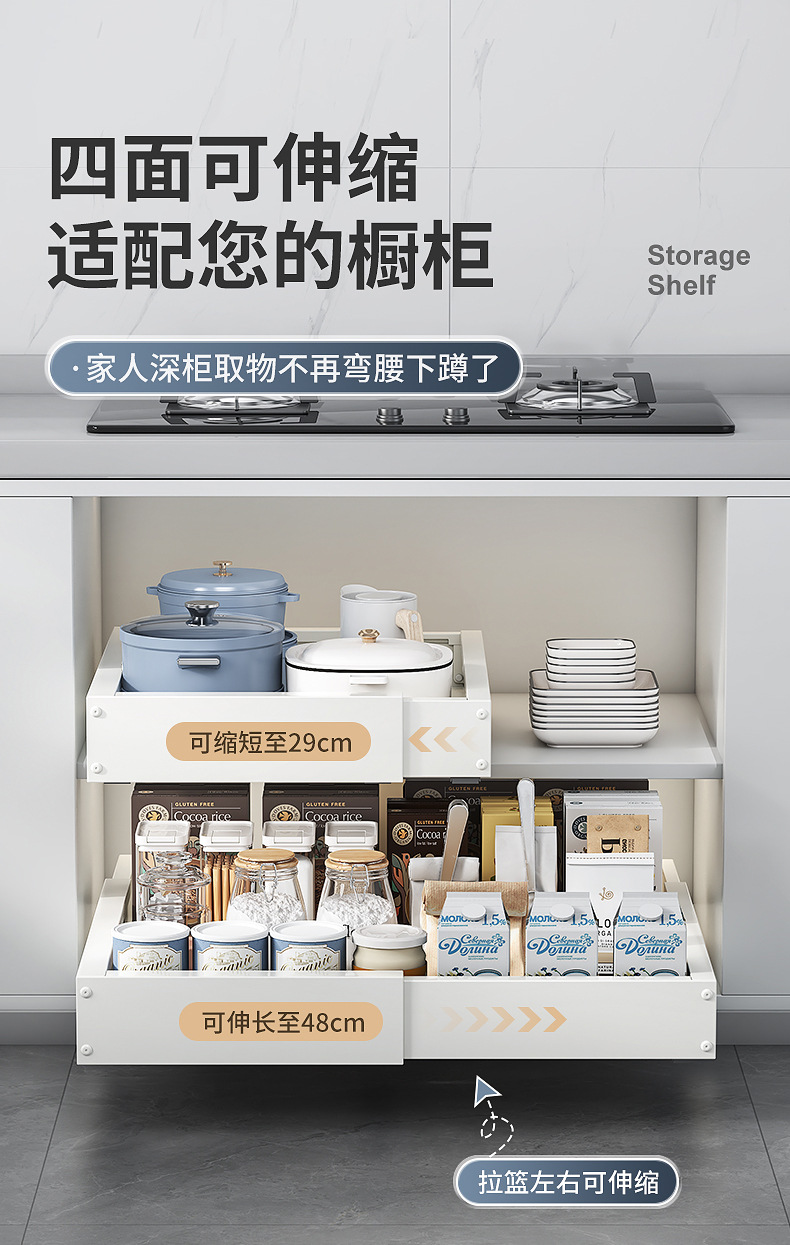 엄선된 두꺼운 신축형 캐비닛 서랍바구니, 싱크대 아래 서랍형 수납선반, 그릇 바구니, 주방 수납용품스토어 가기