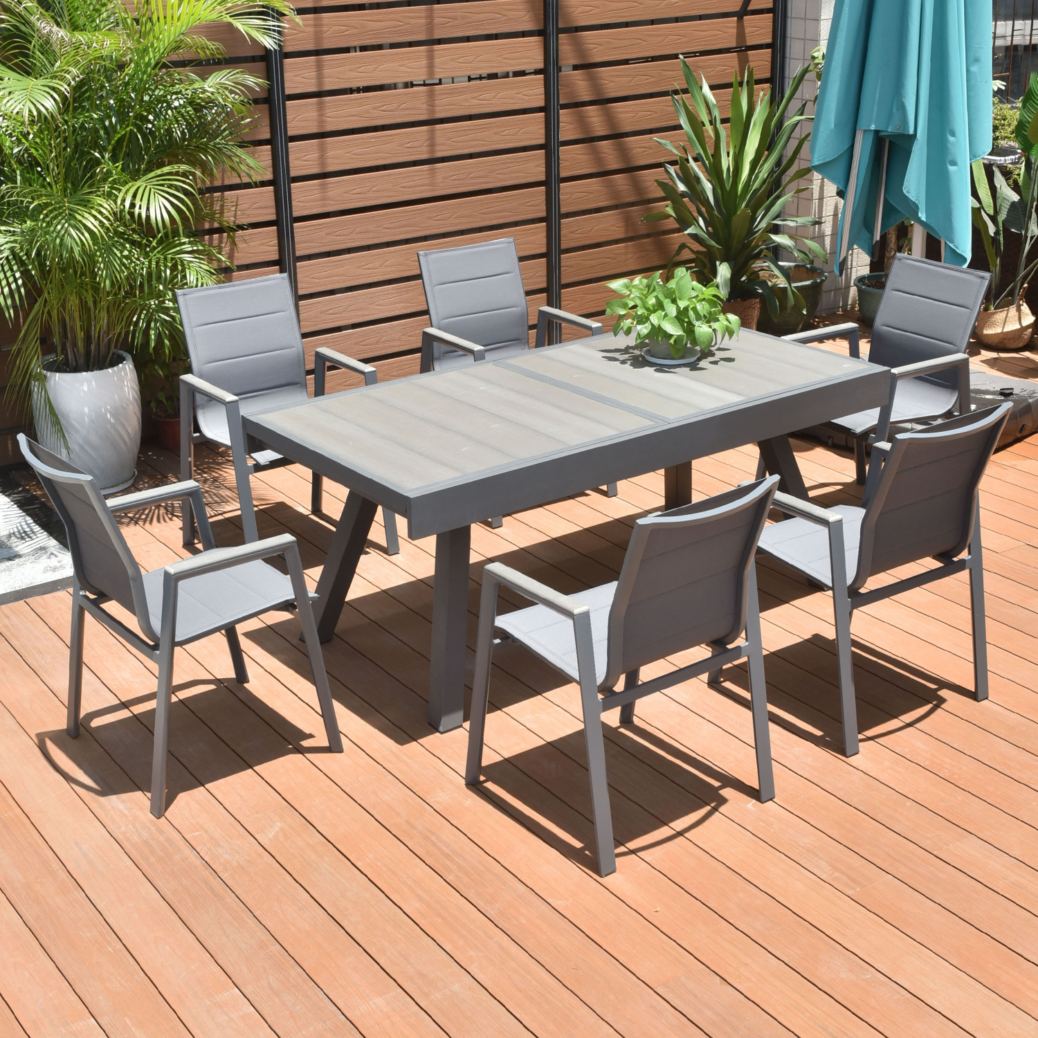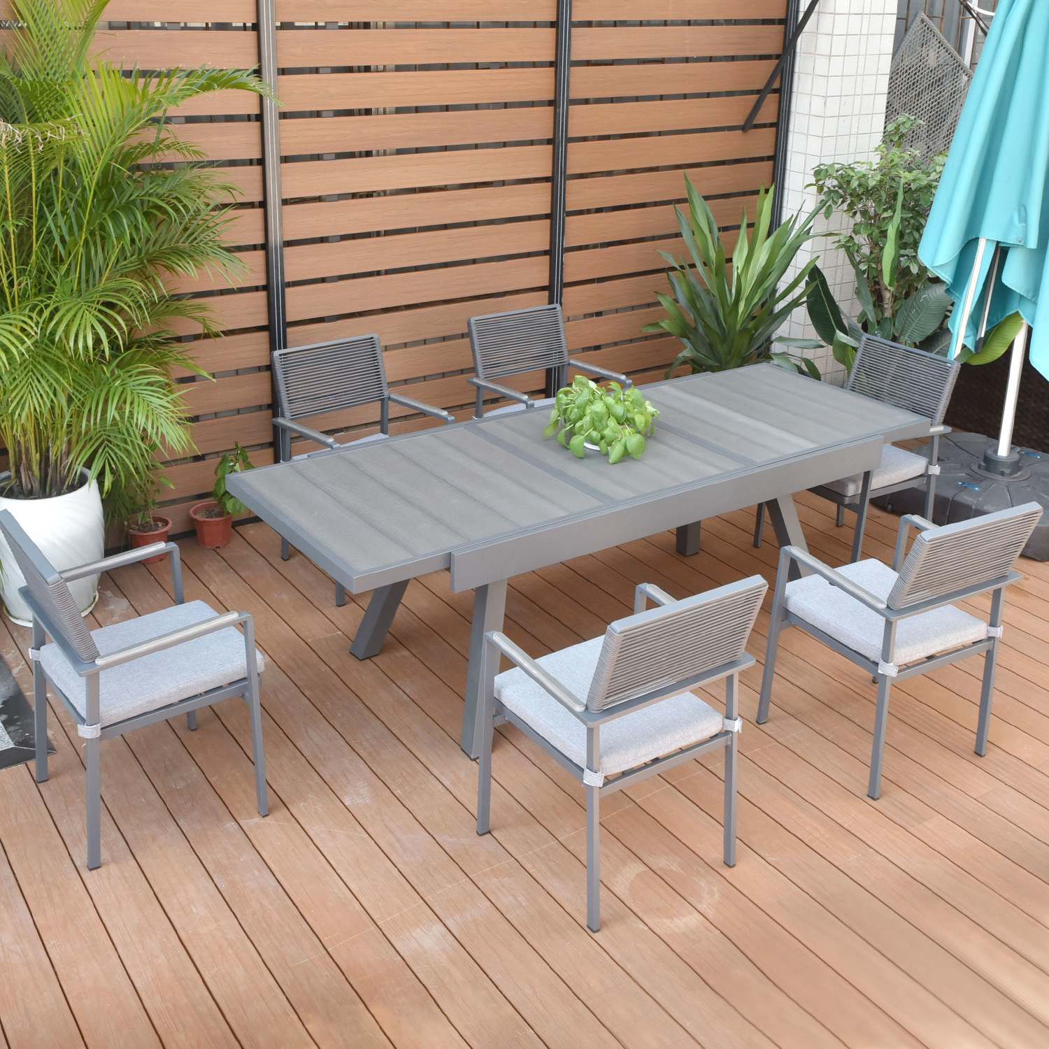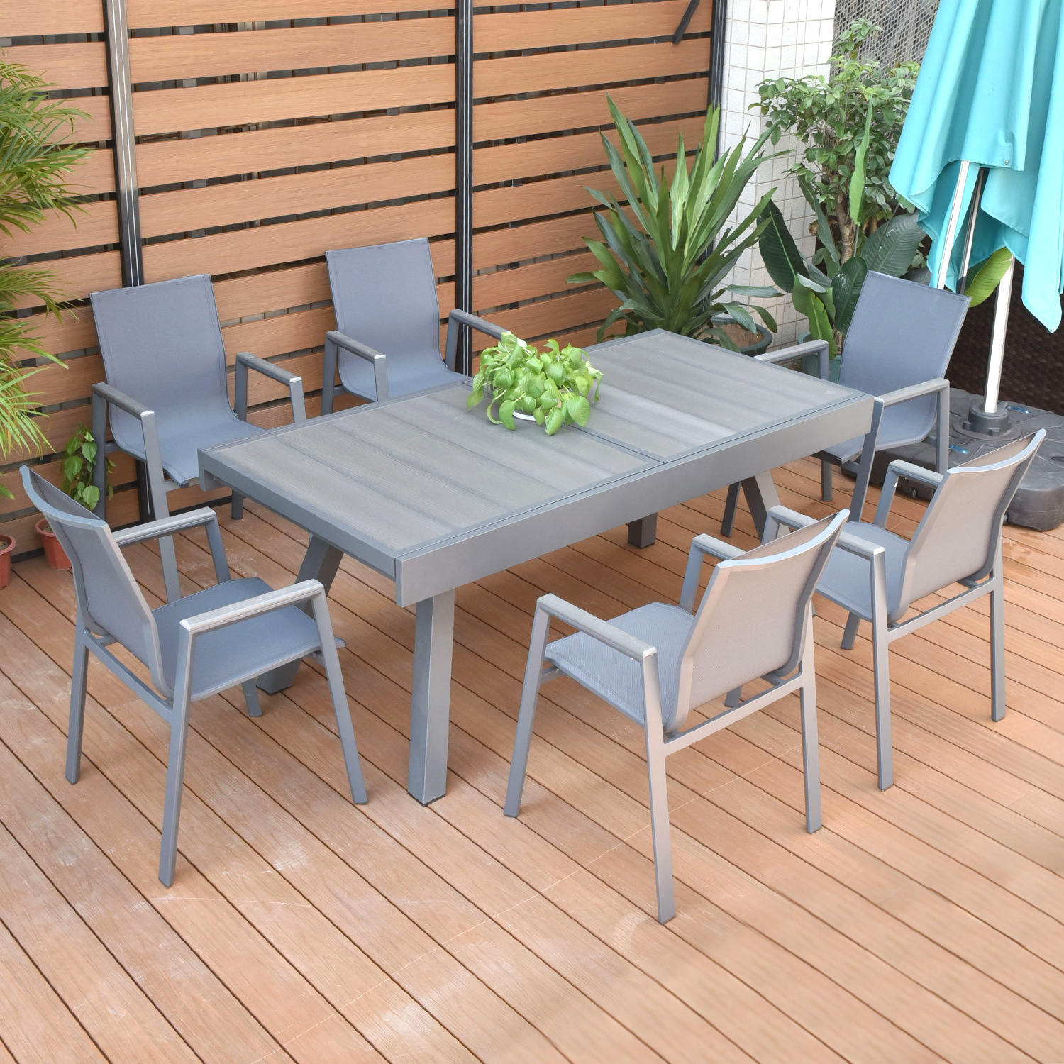 개폐식 부식 방지 플라스틱 목재 캐주얼 야외 야외 발코니 우유 차 가게 식탁 방수 야외 테이블과 의자 가구 회색