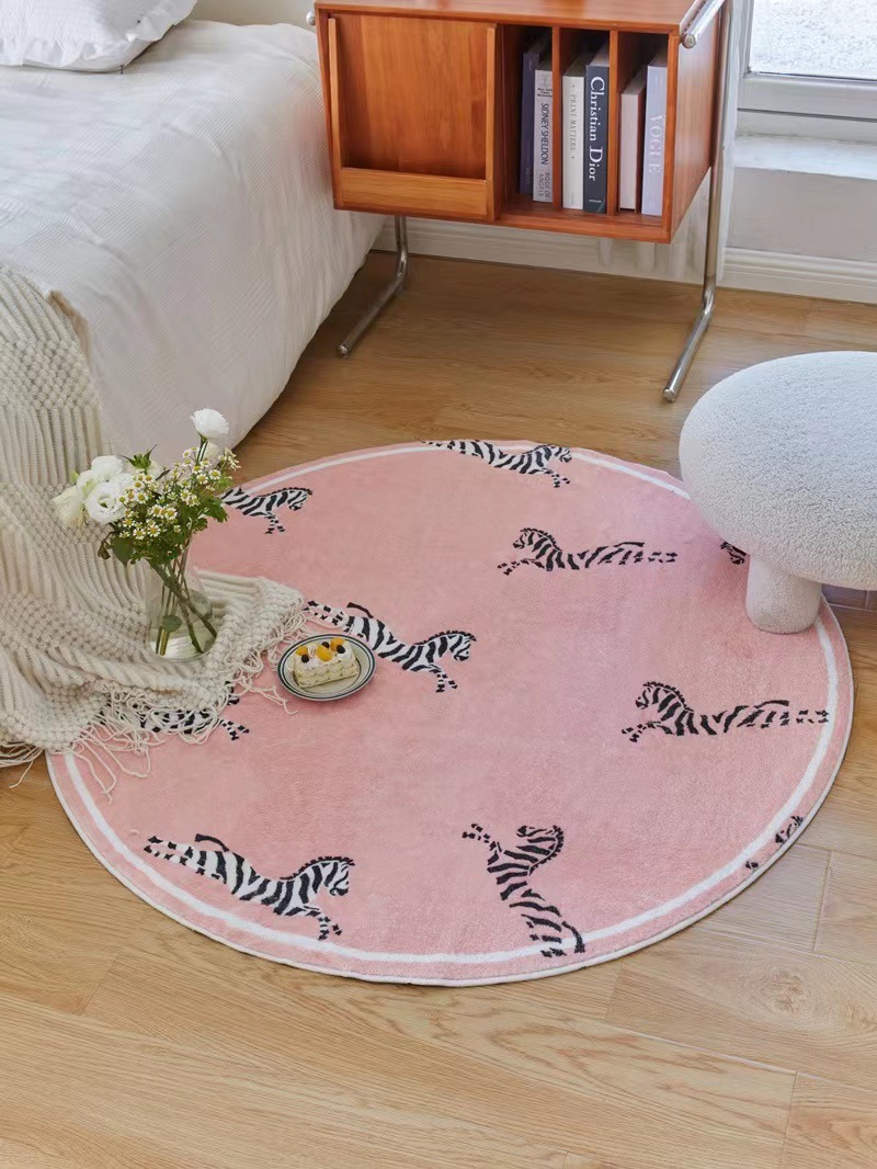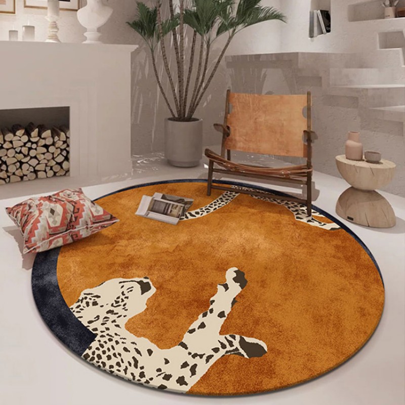 현대적인 스타일의 침실 장식 둥근 표범 플란넬 미끄럼 방지 매트 공장 머리카락 세대의 직접 국경 간 공급