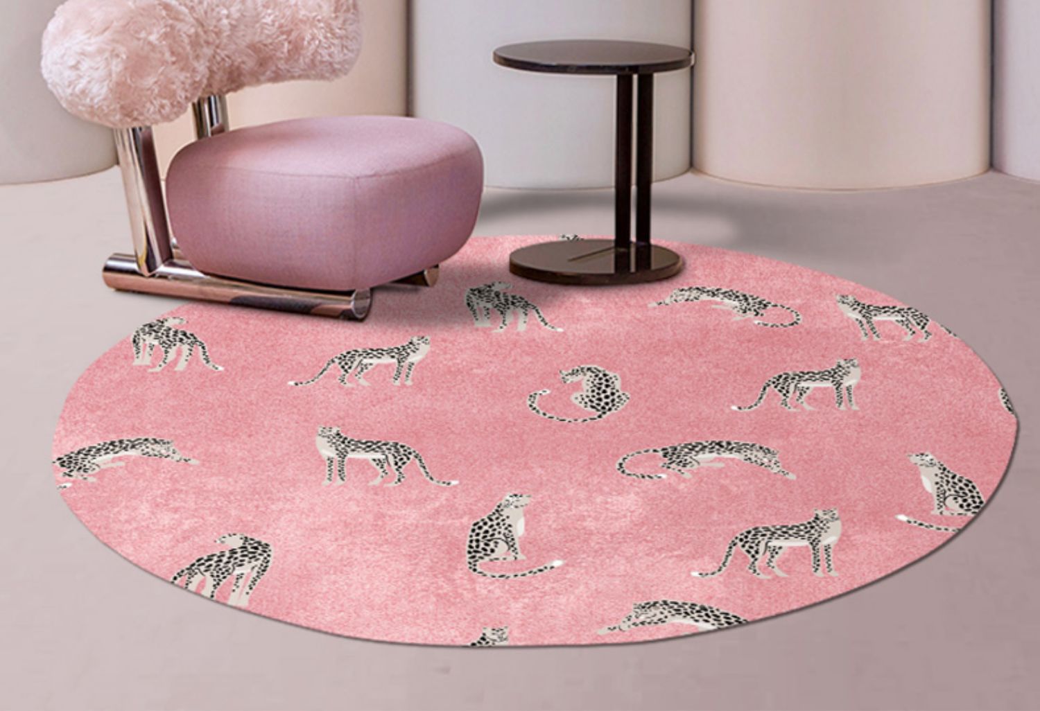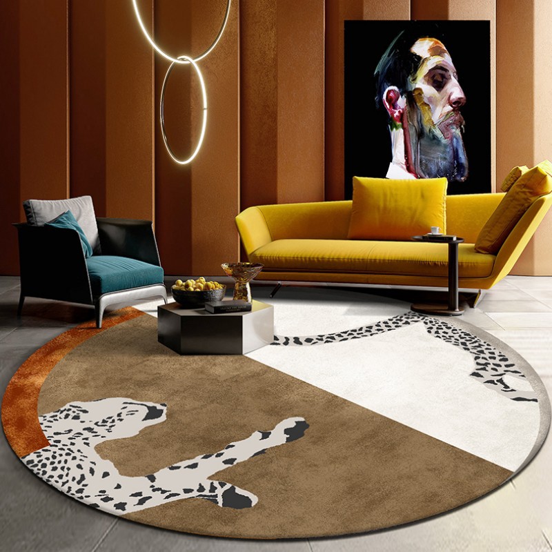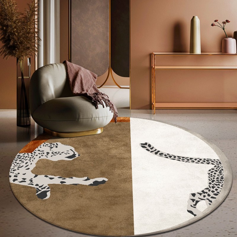 현대적인 스타일의 침실 장식 둥근 표범 플란넬 미끄럼 방지 매트 공장 머리카락 세대의 직접 국경 간 공급스토어 가기
