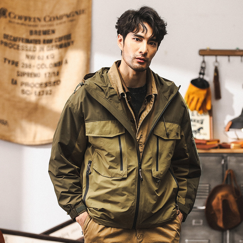 아메리칸 스타일 레트로 차지 재킷 남자의 가을 느슨한 유행 브랜드 야외 사냥 옷 전술 기능 후드 작업 자켓