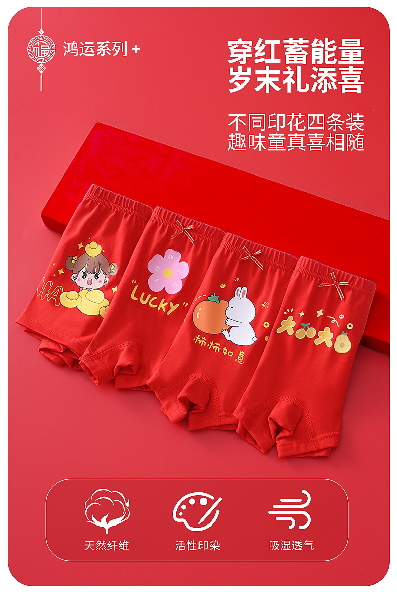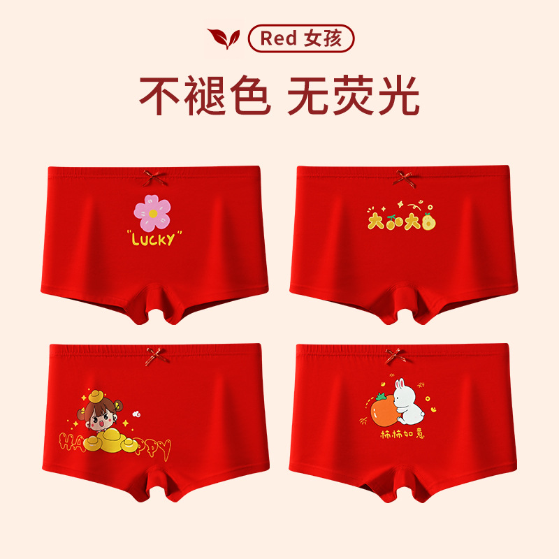 소녀 레드 속옷 어린이 순수 코튼 새해 복서 바지 큰 소년과 소녀 올 코튼 벤 밍니 레드 복서 바지스토어 가기