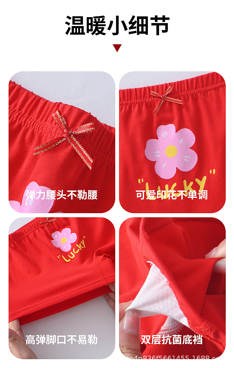 소녀 레드 속옷 어린이 순수 코튼 새해 복서 바지 큰 소년과 소녀 올 코튼 벤 밍니 레드 복서 바지