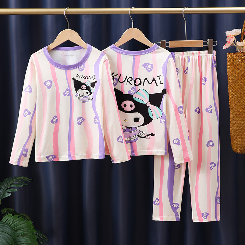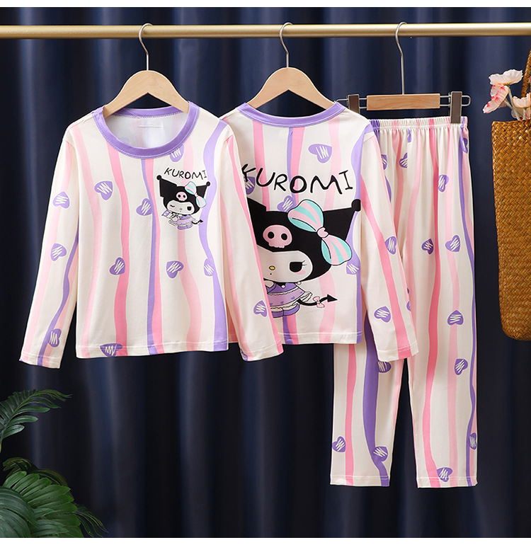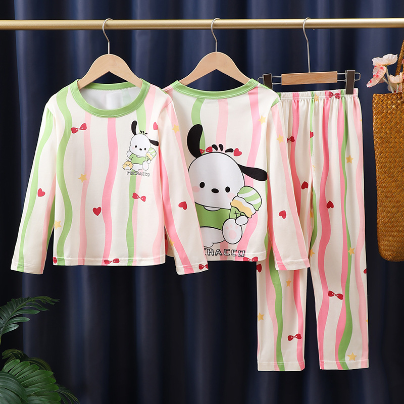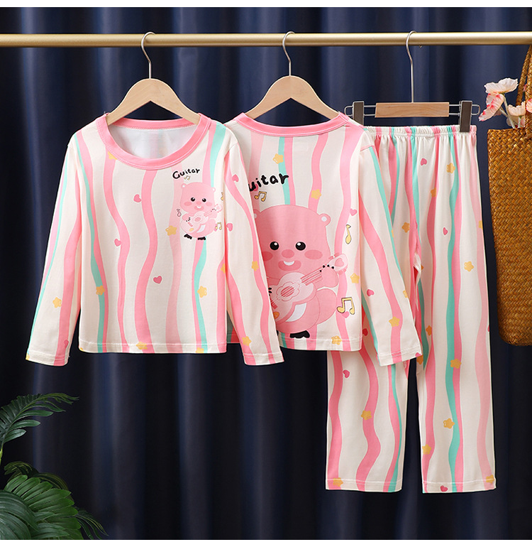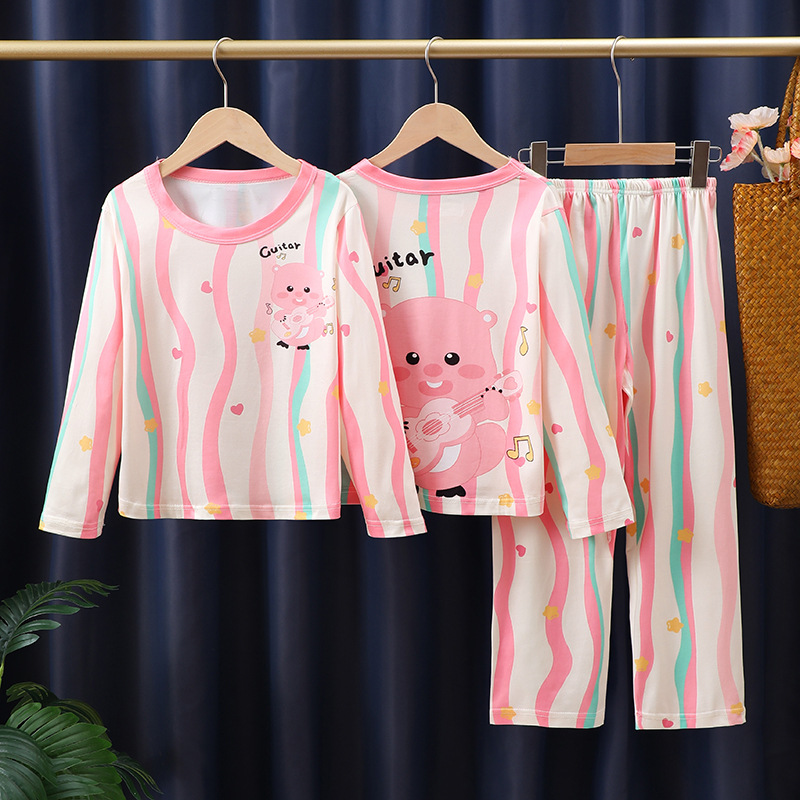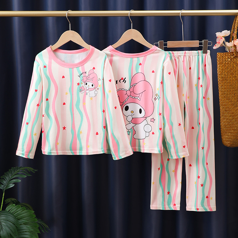 도매 어린이 잠옷 소녀 봄과 가을 긴 소매 얇은 큰 어린이 어린 소녀 귀여운 공주 집 옷 세트