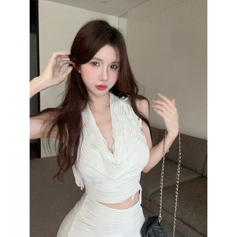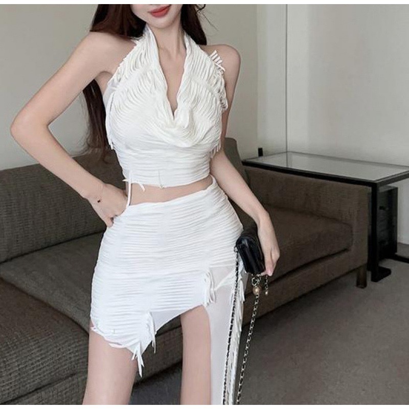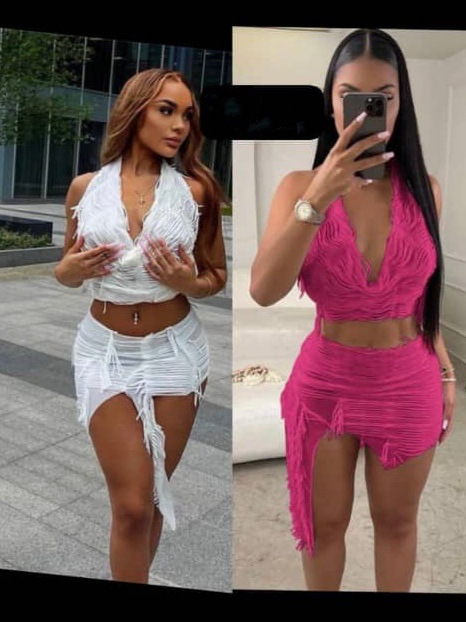 유럽과 미국 여성의 AliExpress 국경 새로운 핫 소녀 스타일 단색 목 조끼 섹시한 불규칙한 치마 세트스토어 가기