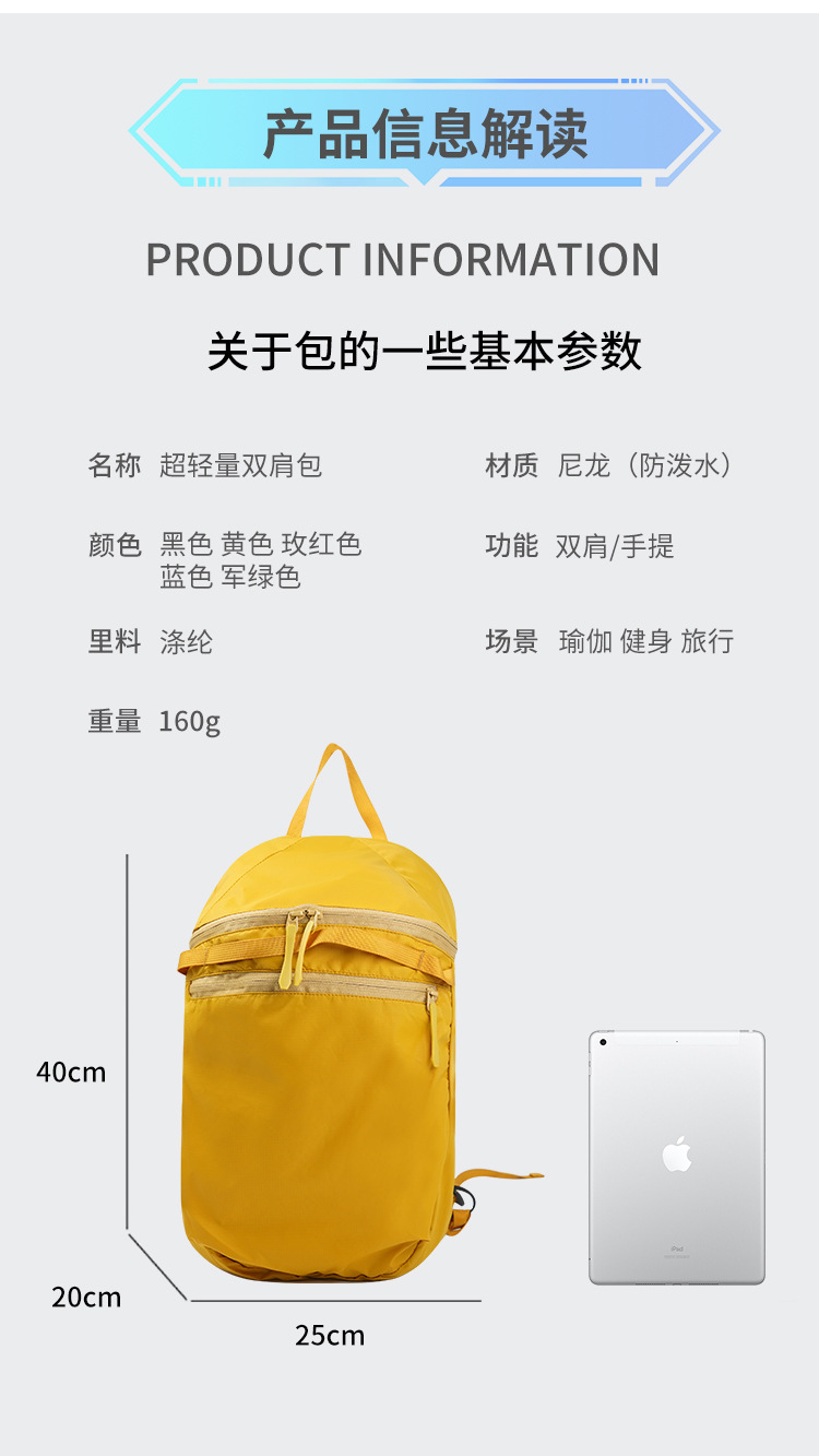 Heliad15L 초경량 접이식 어깨 스포츠 배낭 방수 및 내마모성 나일론 등산 가방 로고 인쇄 가능