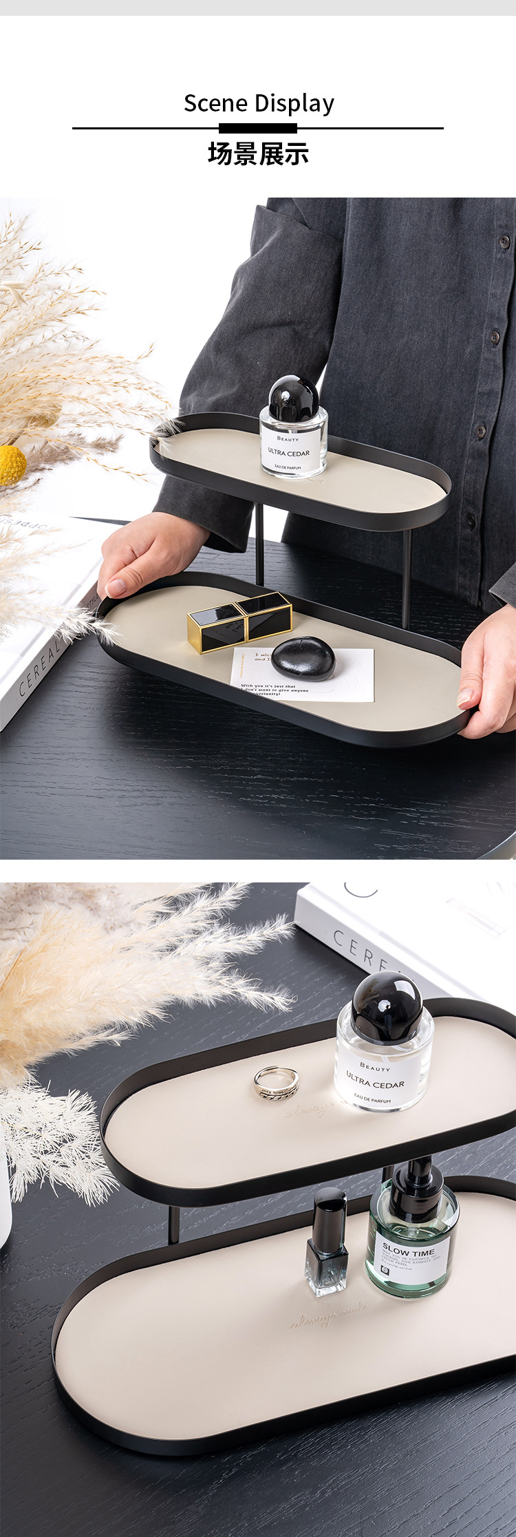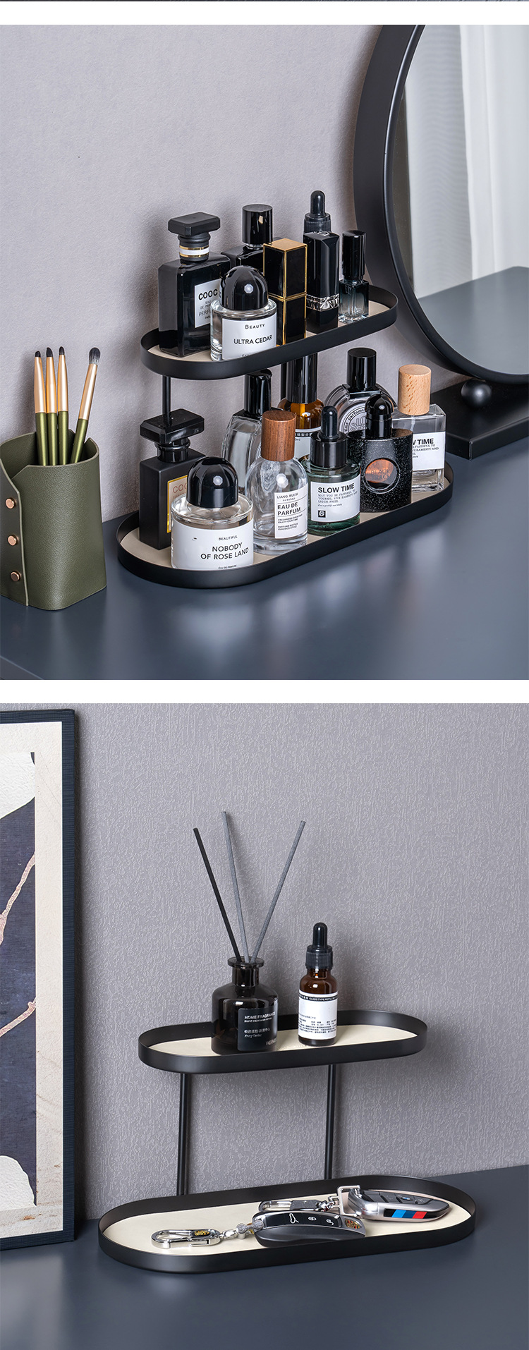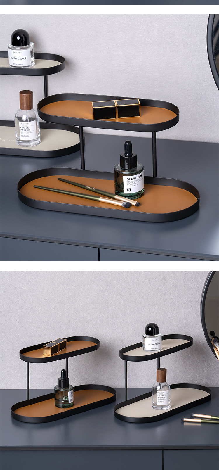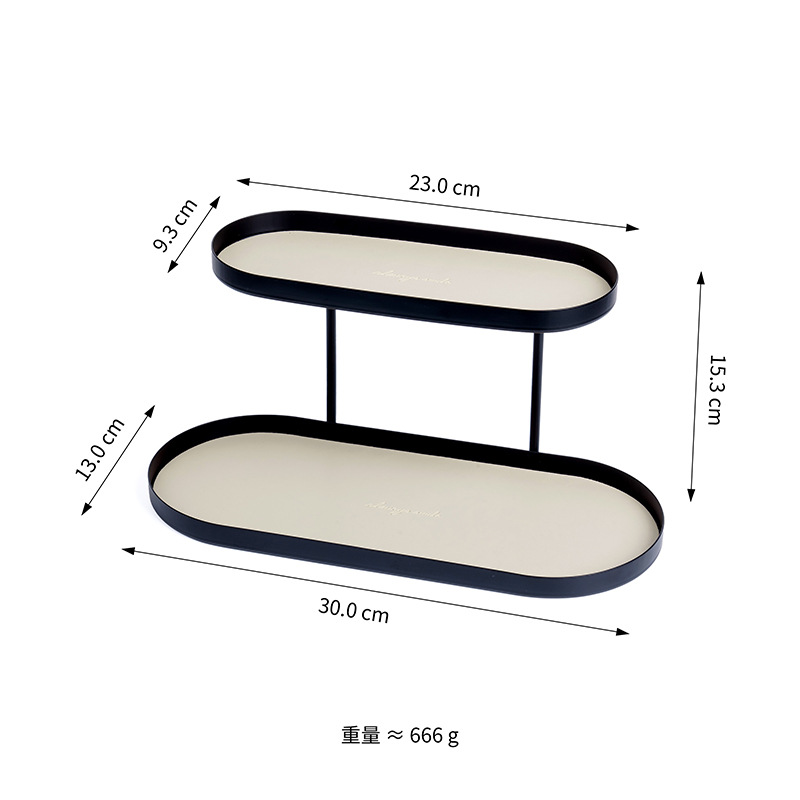 북유럽 스타일 연철 가죽 더블 레이어 스토리지 랙 포치 화장품 향수 스토리지 랙 데스크탑 장식품 스토리지 랙